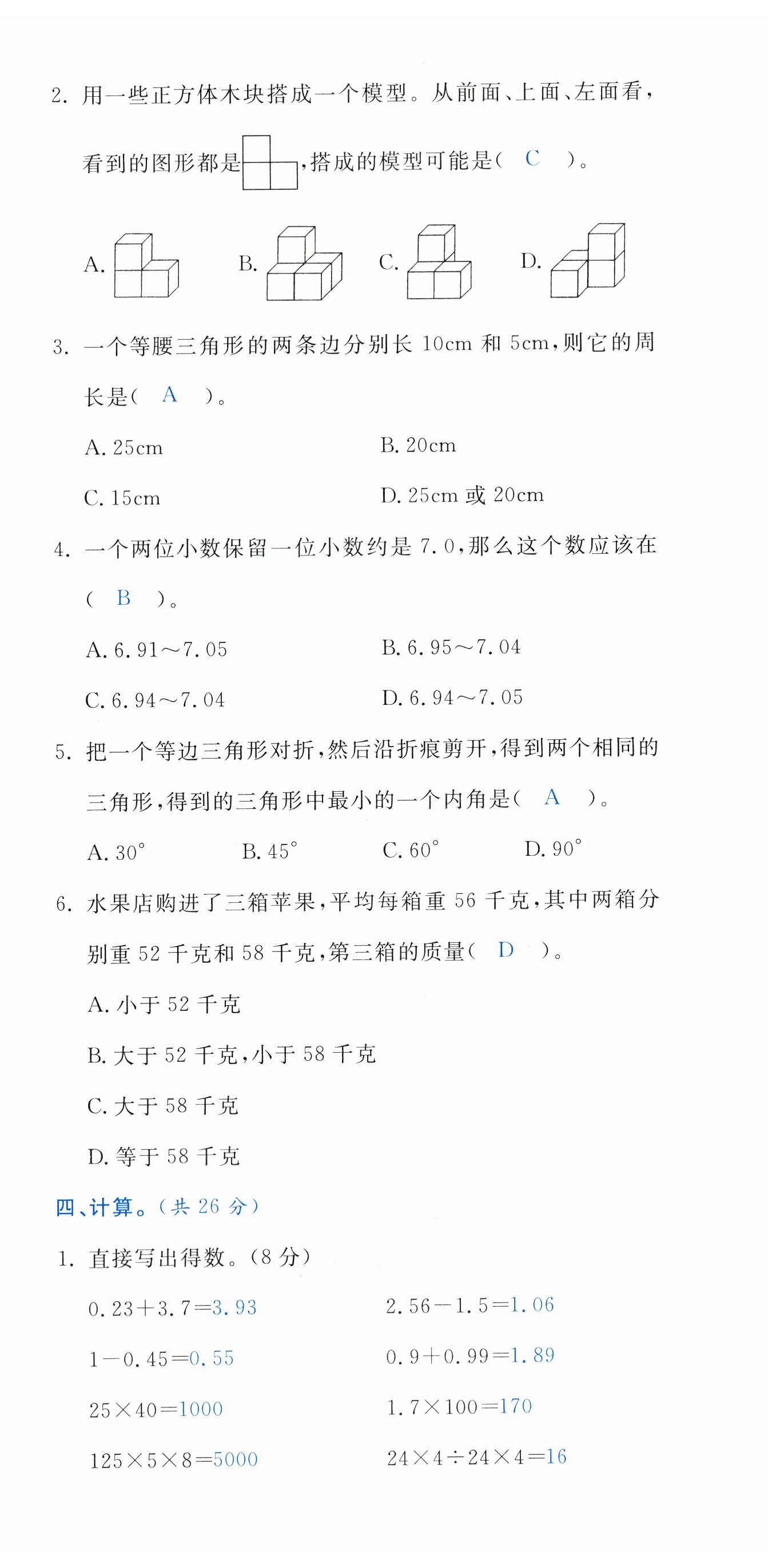 注:目前有些书本章节名称可能整理的还不是很完善,但都是按照顺序排列的,请同学们按照顺序仔细查找。练习册 2024年小学期末加油站四年级数学下册人教版 答案主要是用来给同学们做完题方便对答案用的,请勿直接抄袭。