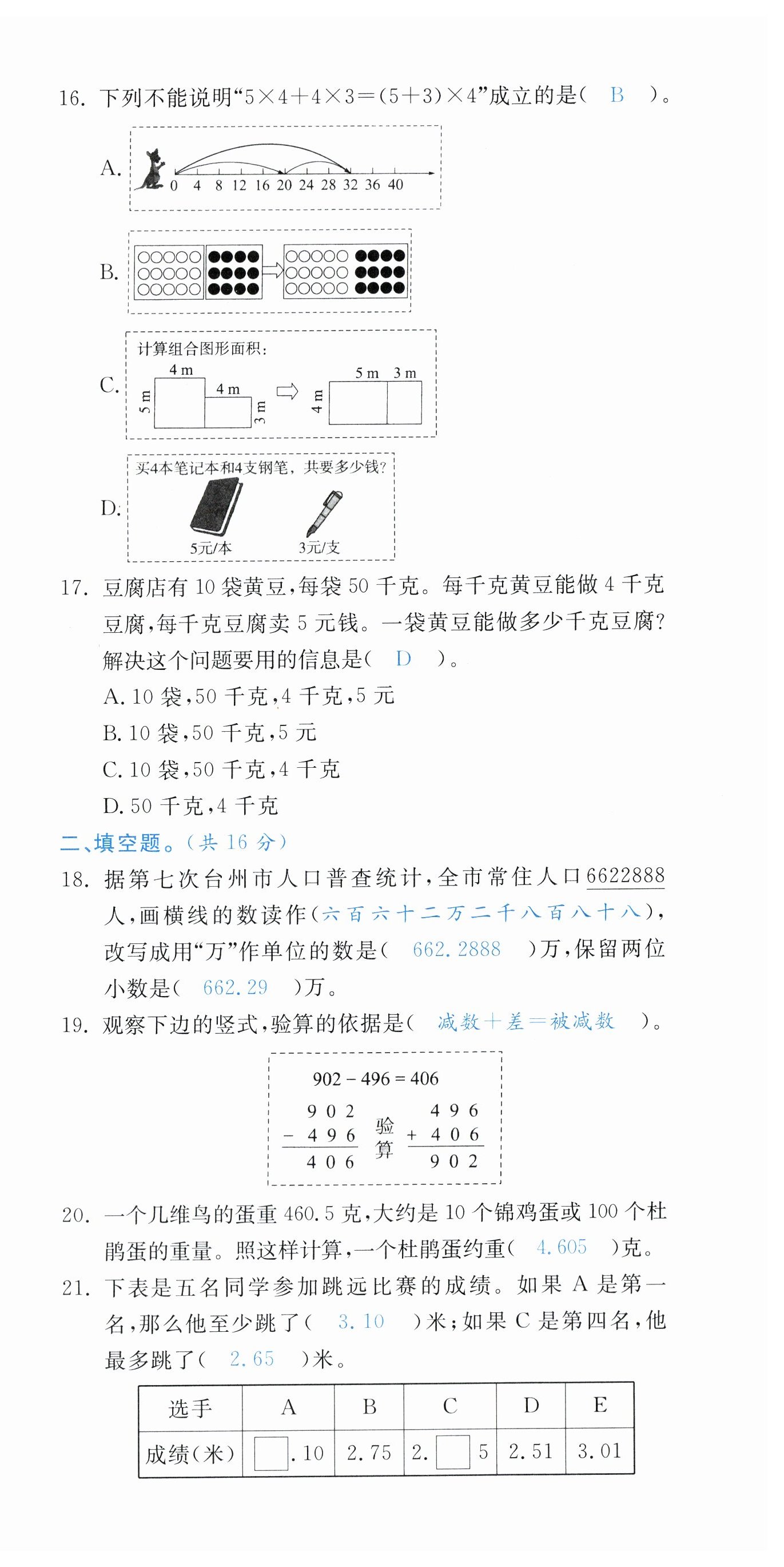 注:目前有些书本章节名称可能整理的还不是很完善,但都是按照顺序排列的,请同学们按照顺序仔细查找。练习册 2024年小学期末加油站四年级数学下册人教版 答案主要是用来给同学们做完题方便对答案用的,请勿直接抄袭。