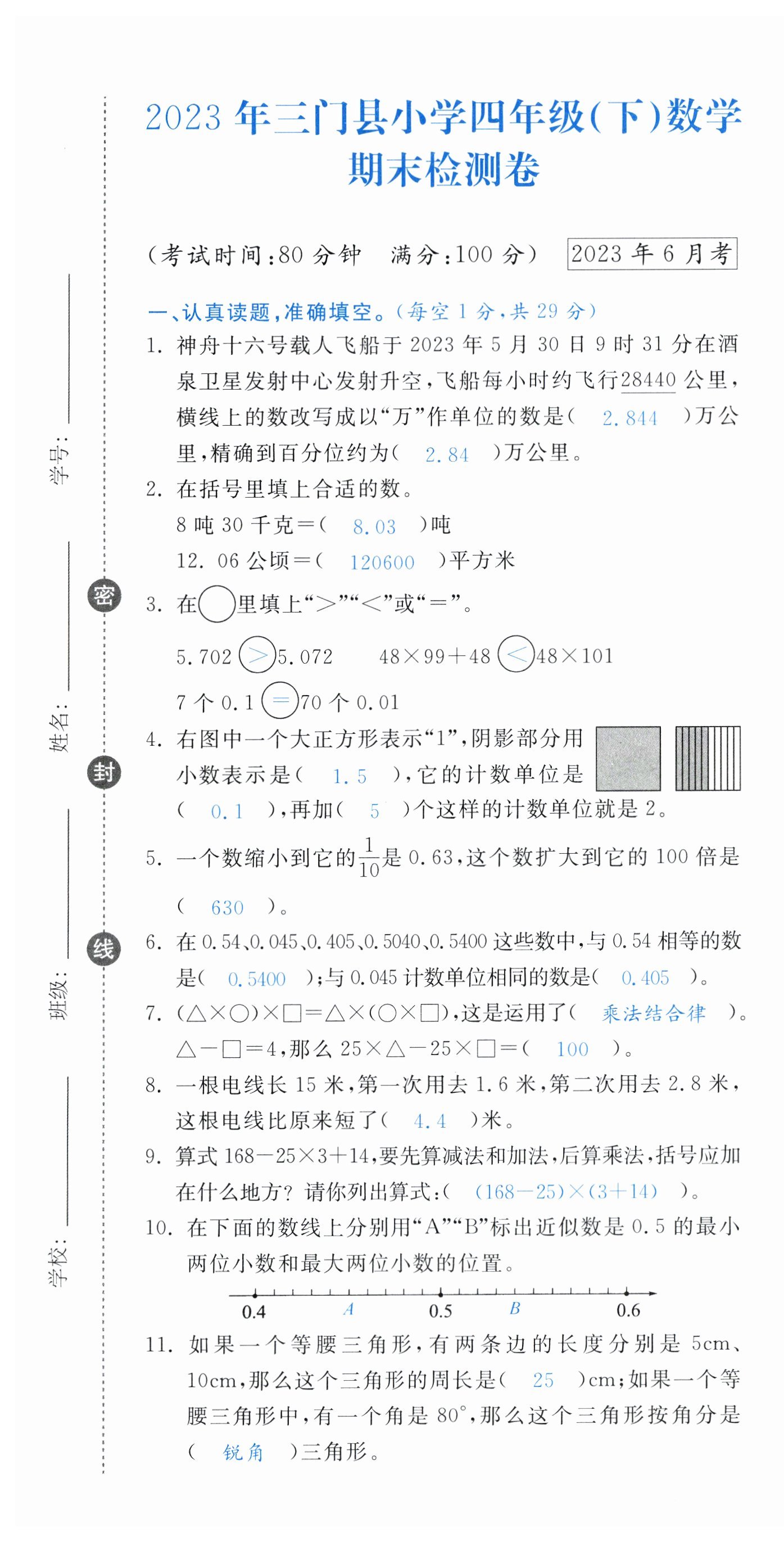 注:目前有些书本章节名称可能整理的还不是很完善,但都是按照顺序排列的,请同学们按照顺序仔细查找。练习册 2024年小学期末加油站四年级数学下册人教版 答案主要是用来给同学们做完题方便对答案用的,请勿直接抄袭。
