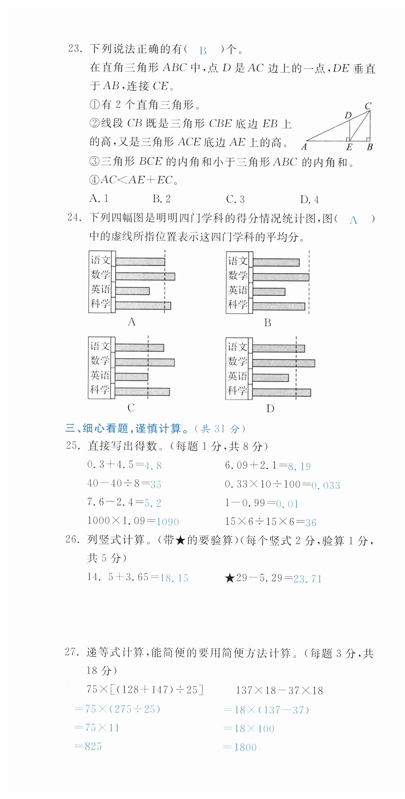 注:目前有些书本章节名称可能整理的还不是很完善,但都是按照顺序排列的,请同学们按照顺序仔细查找。练习册 2024年小学期末加油站四年级数学下册人教版 答案主要是用来给同学们做完题方便对答案用的,请勿直接抄袭。