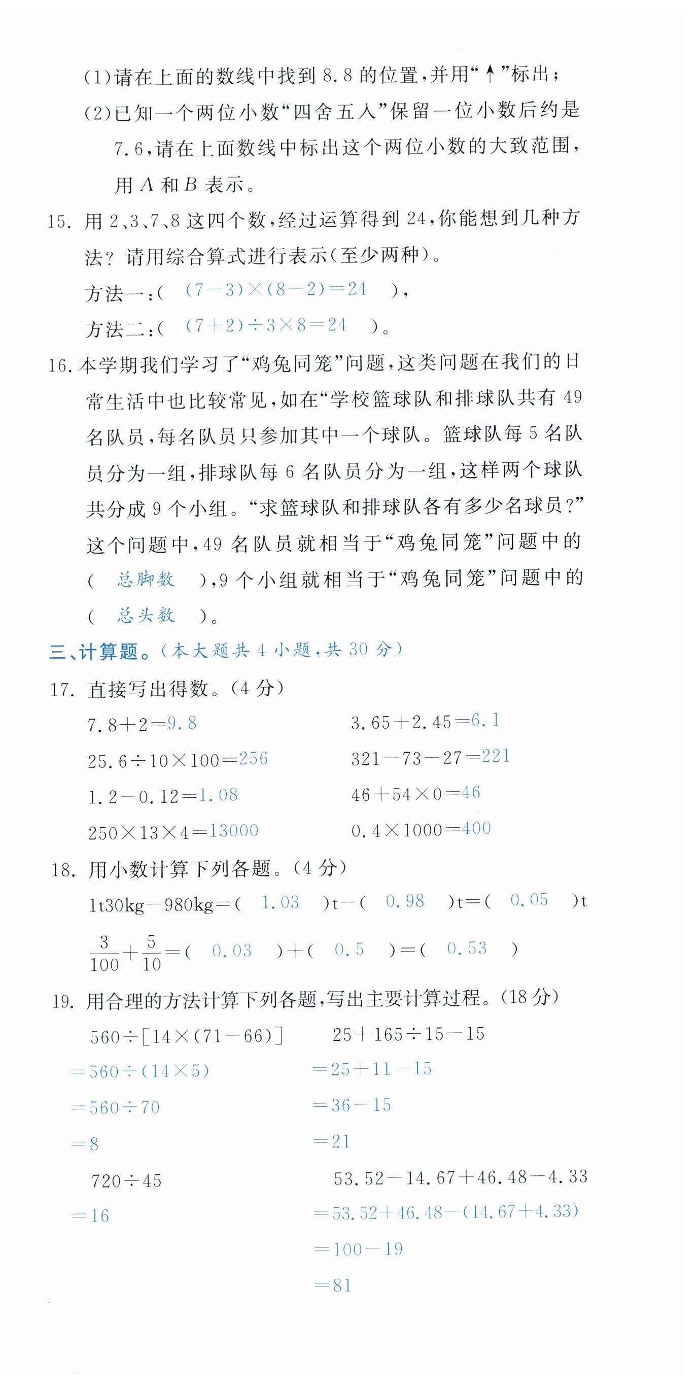 注:目前有些书本章节名称可能整理的还不是很完善,但都是按照顺序排列的,请同学们按照顺序仔细查找。练习册 2024年小学期末加油站四年级数学下册人教版 答案主要是用来给同学们做完题方便对答案用的,请勿直接抄袭。