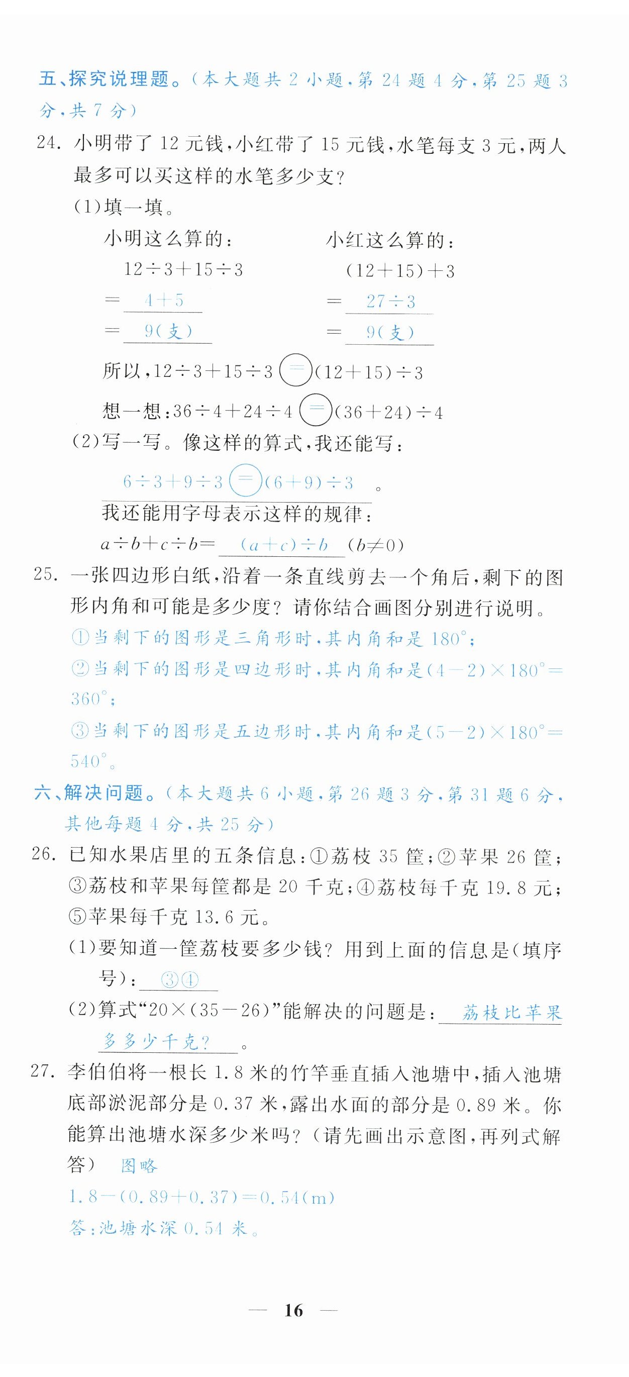 注:目前有些书本章节名称可能整理的还不是很完善,但都是按照顺序排列的,请同学们按照顺序仔细查找。练习册 2024年小学期末加油站四年级数学下册人教版 答案主要是用来给同学们做完题方便对答案用的,请勿直接抄袭。