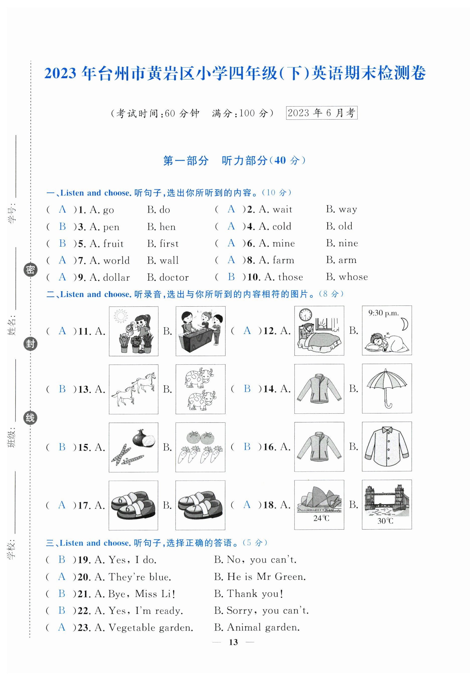 注:目前有些书本章节名称可能整理的还不是很完善,但都是按照顺序排列的,请同学们按照顺序仔细查找。练习册 2024年小学期末加油站四年级英语下册人教版 答案主要是用来给同学们做完题方便对答案用的,请勿直接抄袭。