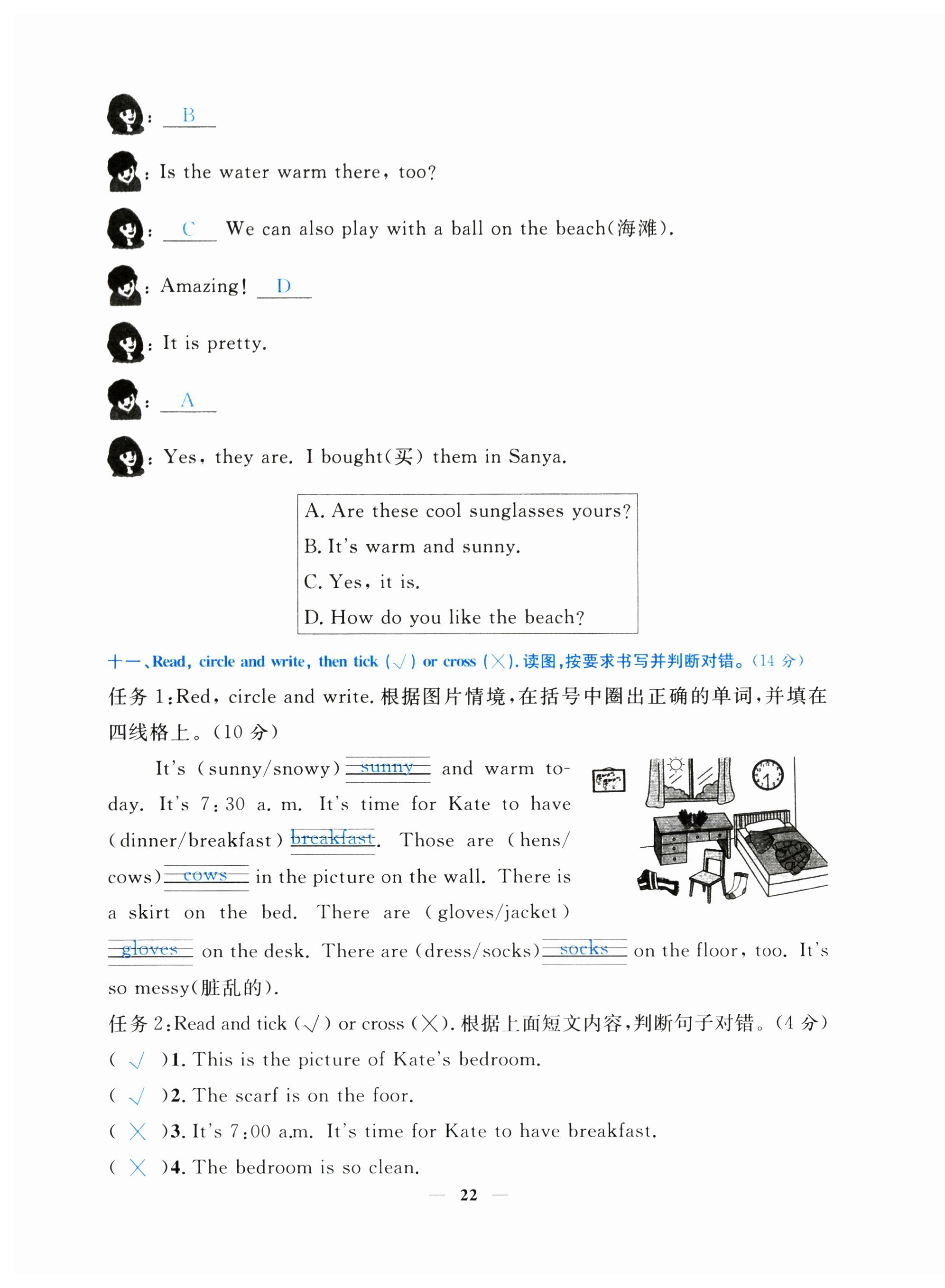 注:目前有些书本章节名称可能整理的还不是很完善,但都是按照顺序排列的,请同学们按照顺序仔细查找。练习册 2024年小学期末加油站四年级英语下册人教版 答案主要是用来给同学们做完题方便对答案用的,请勿直接抄袭。