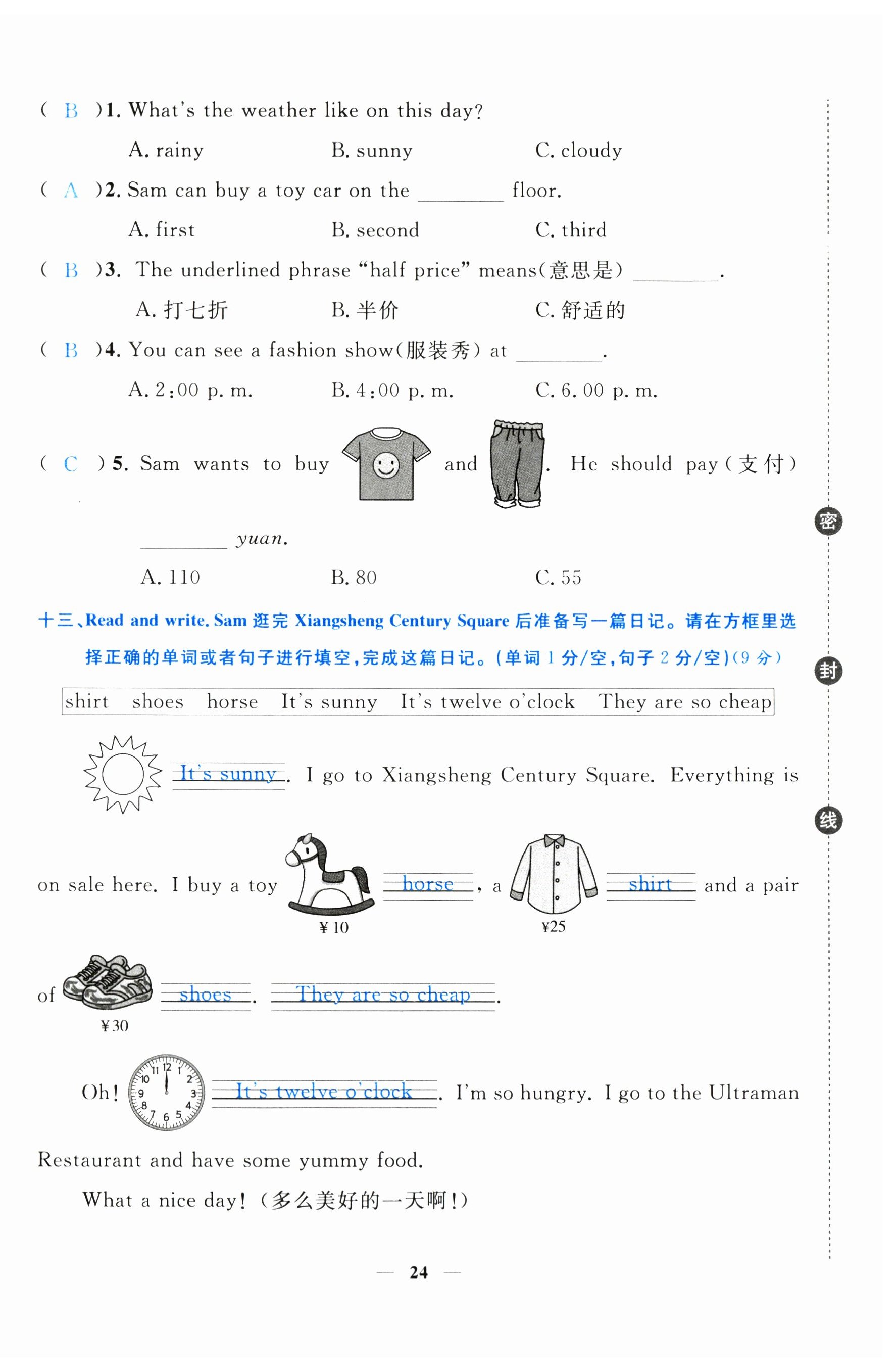 注:目前有些书本章节名称可能整理的还不是很完善,但都是按照顺序排列的,请同学们按照顺序仔细查找。练习册 2024年小学期末加油站四年级英语下册人教版 答案主要是用来给同学们做完题方便对答案用的,请勿直接抄袭。