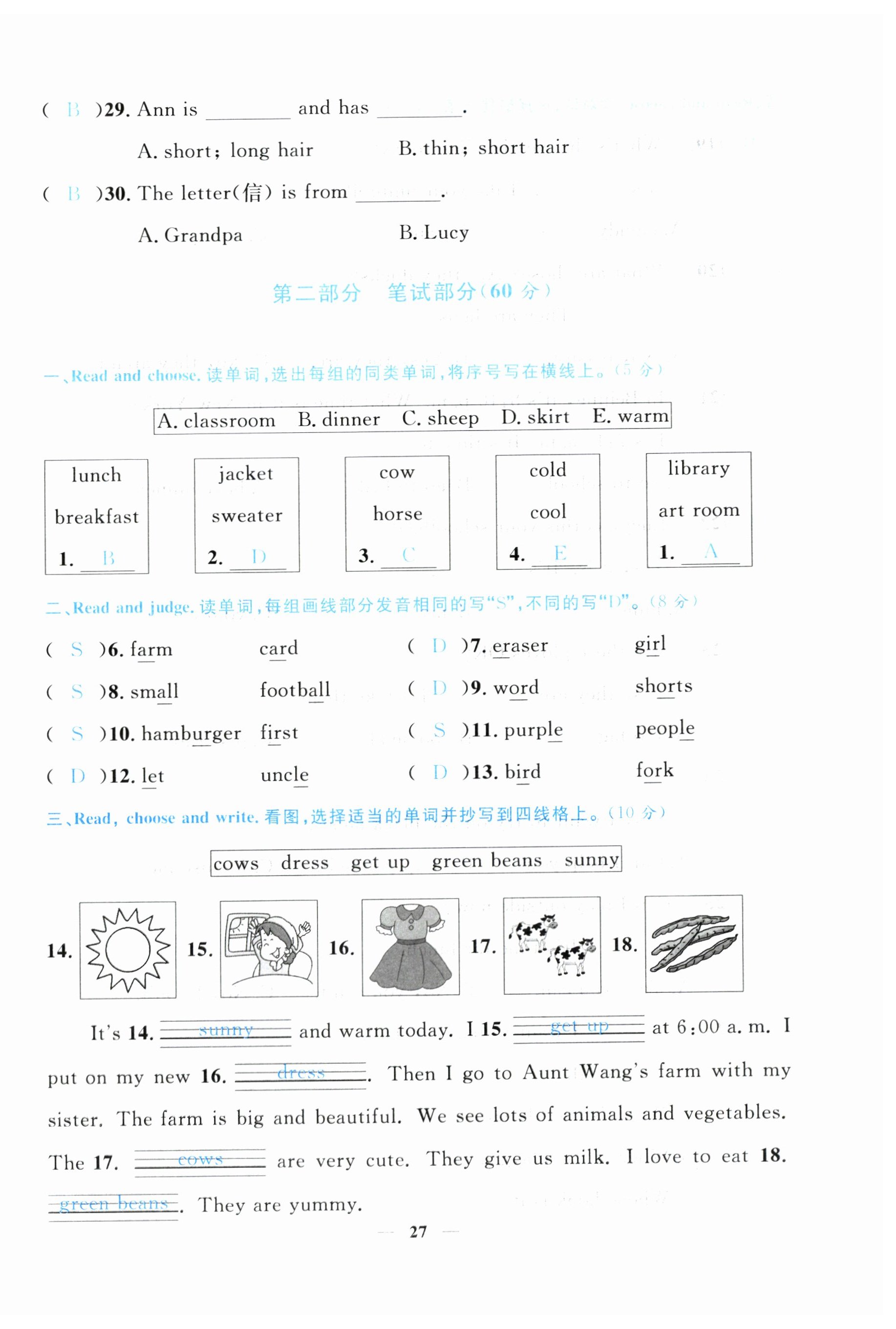 注:目前有些书本章节名称可能整理的还不是很完善,但都是按照顺序排列的,请同学们按照顺序仔细查找。练习册 2024年小学期末加油站四年级英语下册人教版 答案主要是用来给同学们做完题方便对答案用的,请勿直接抄袭。