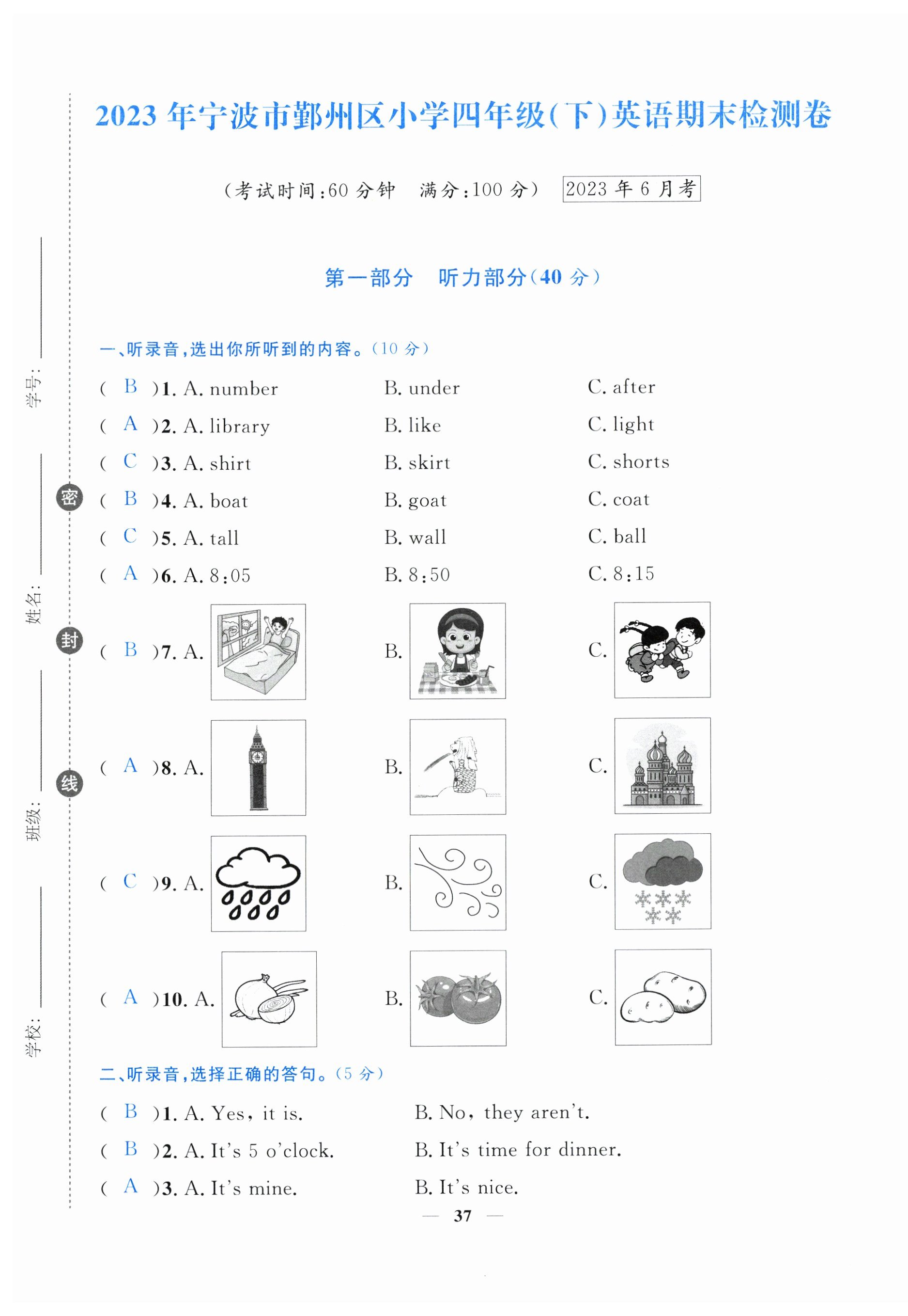 注:目前有些书本章节名称可能整理的还不是很完善,但都是按照顺序排列的,请同学们按照顺序仔细查找。练习册 2024年小学期末加油站四年级英语下册人教版 答案主要是用来给同学们做完题方便对答案用的,请勿直接抄袭。