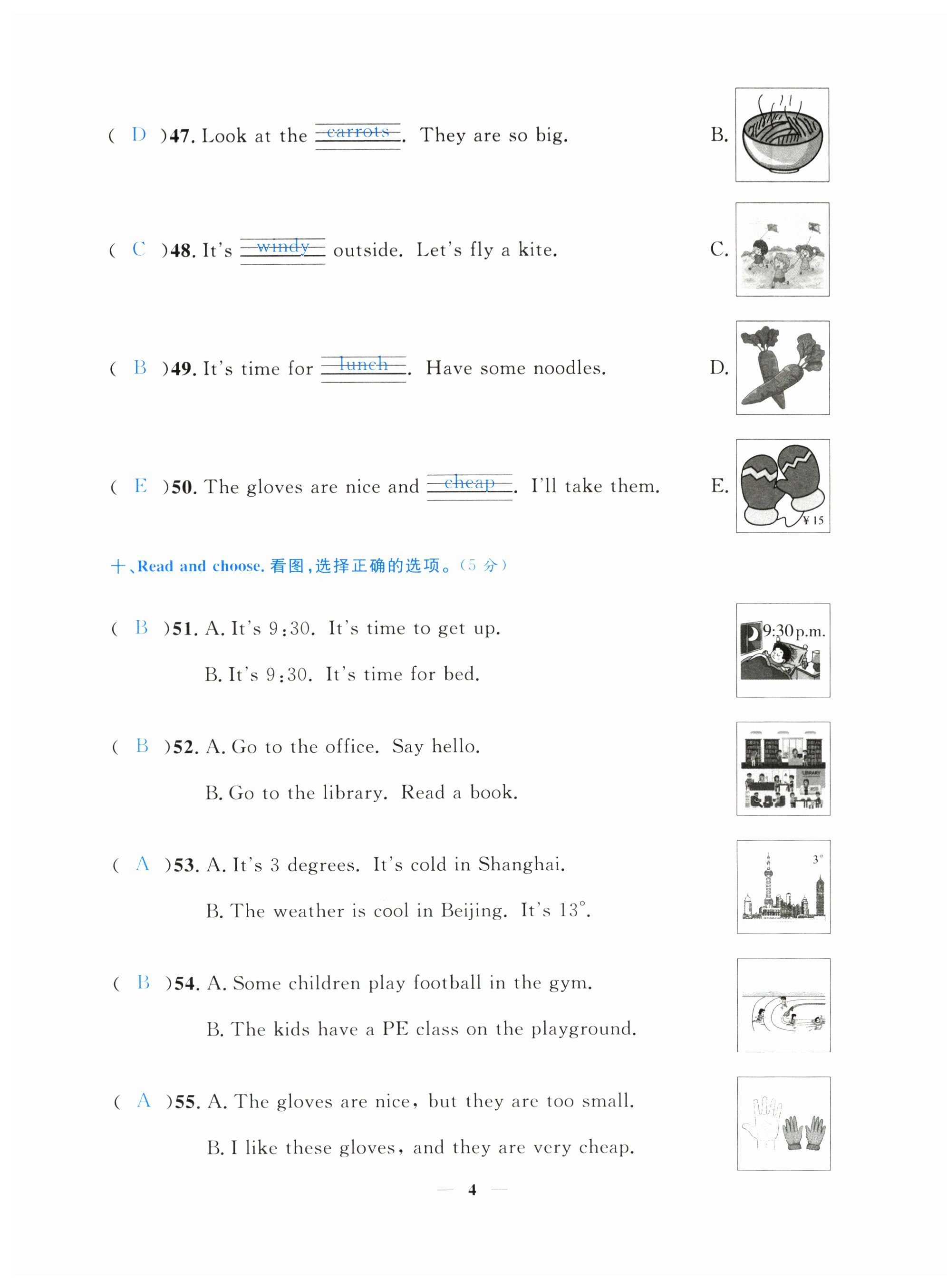 注:目前有些书本章节名称可能整理的还不是很完善,但都是按照顺序排列的,请同学们按照顺序仔细查找。练习册 2024年小学期末加油站四年级英语下册人教版 答案主要是用来给同学们做完题方便对答案用的,请勿直接抄袭。