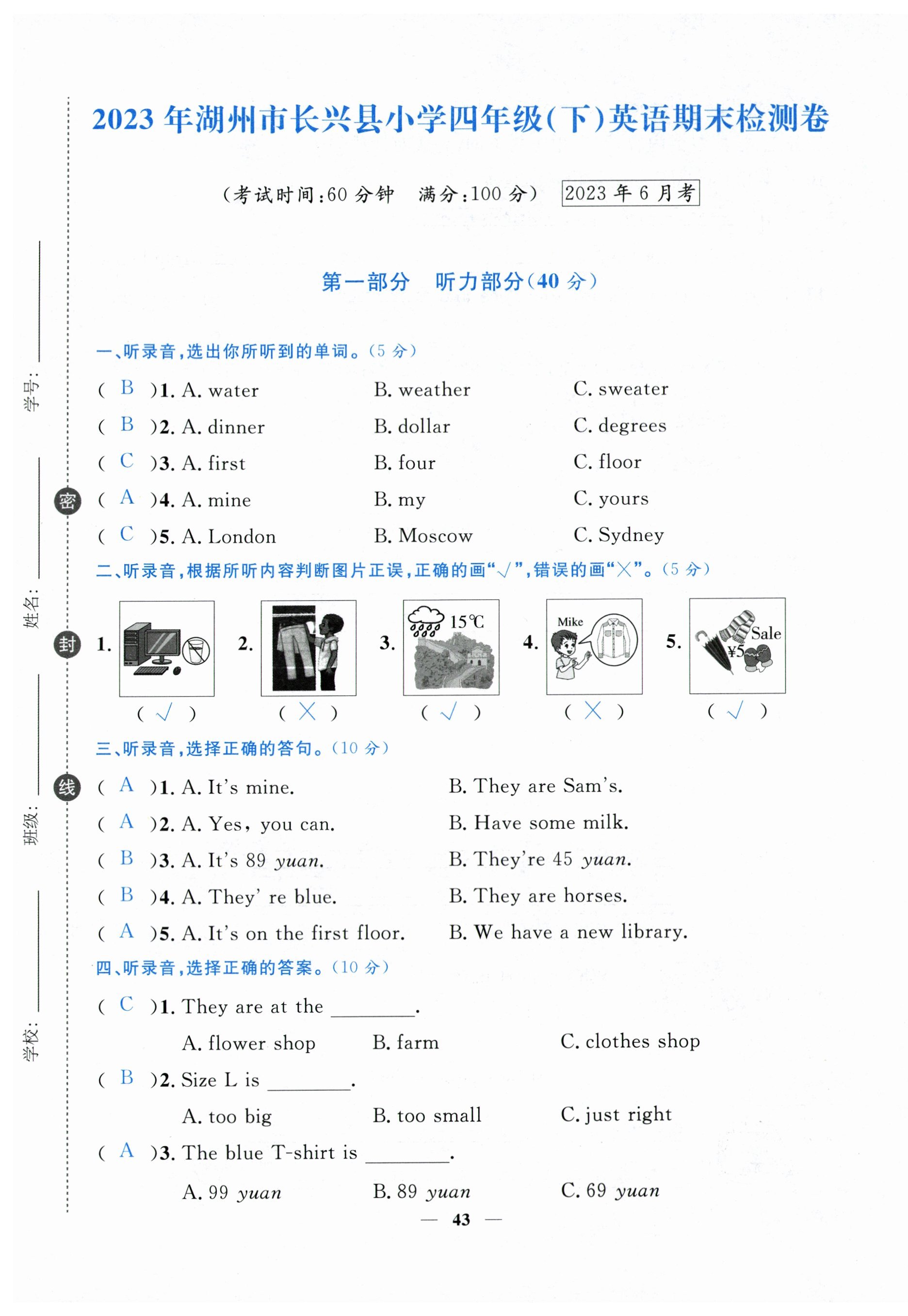 注:目前有些书本章节名称可能整理的还不是很完善,但都是按照顺序排列的,请同学们按照顺序仔细查找。练习册 2024年小学期末加油站四年级英语下册人教版 答案主要是用来给同学们做完题方便对答案用的,请勿直接抄袭。
