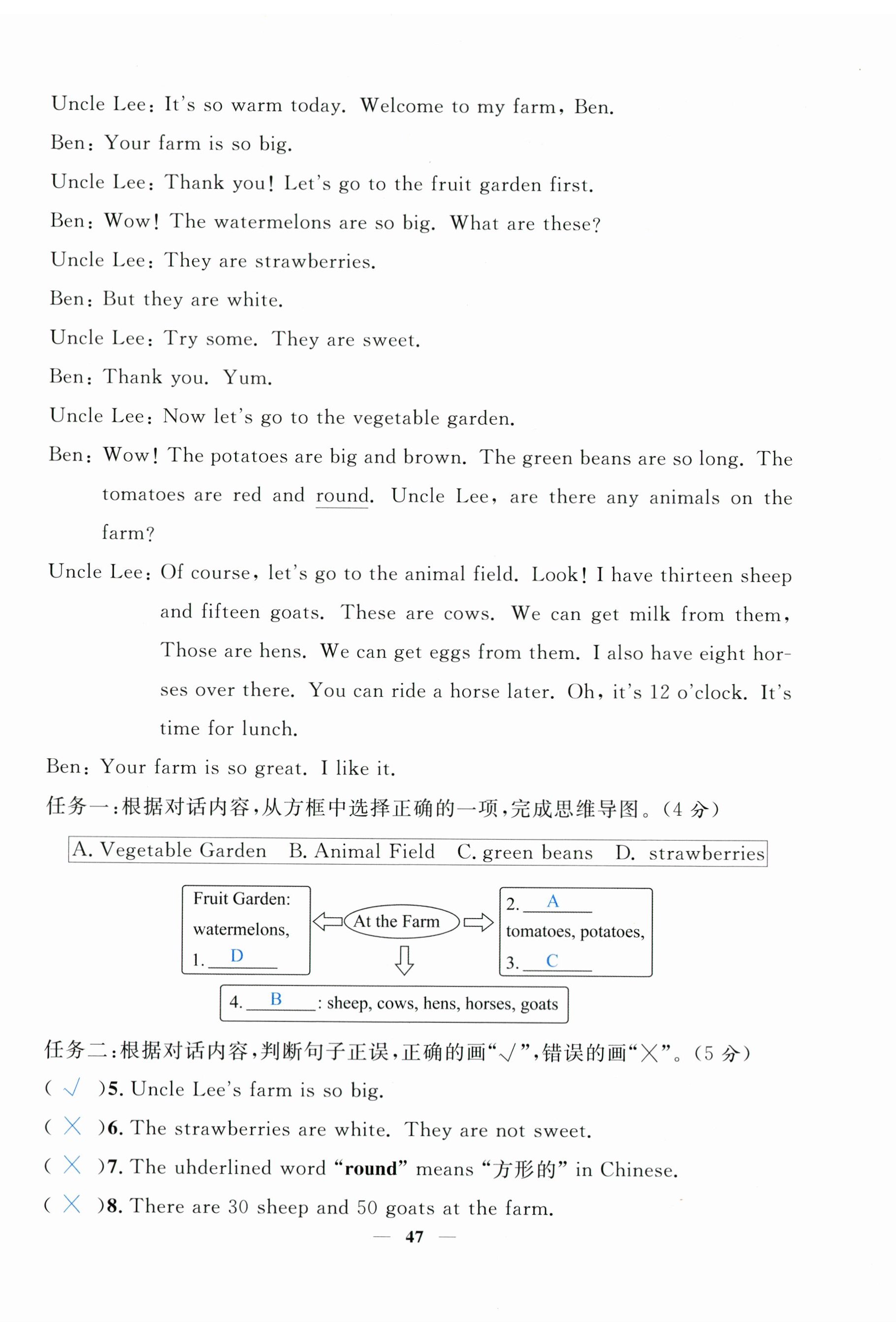 注:目前有些书本章节名称可能整理的还不是很完善,但都是按照顺序排列的,请同学们按照顺序仔细查找。练习册 2024年小学期末加油站四年级英语下册人教版 答案主要是用来给同学们做完题方便对答案用的,请勿直接抄袭。