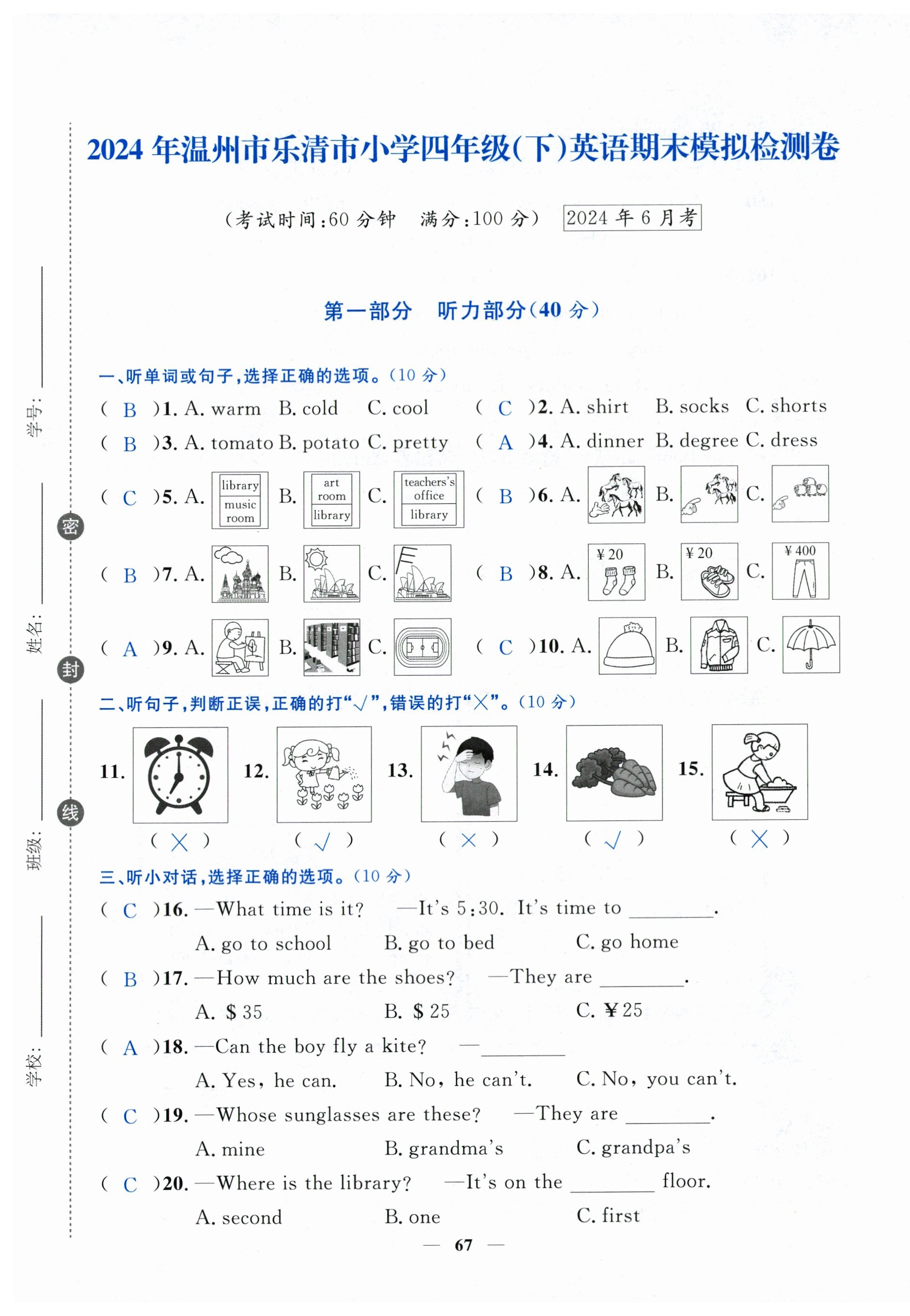 注:目前有些书本章节名称可能整理的还不是很完善,但都是按照顺序排列的,请同学们按照顺序仔细查找。练习册 2024年小学期末加油站四年级英语下册人教版 答案主要是用来给同学们做完题方便对答案用的,请勿直接抄袭。