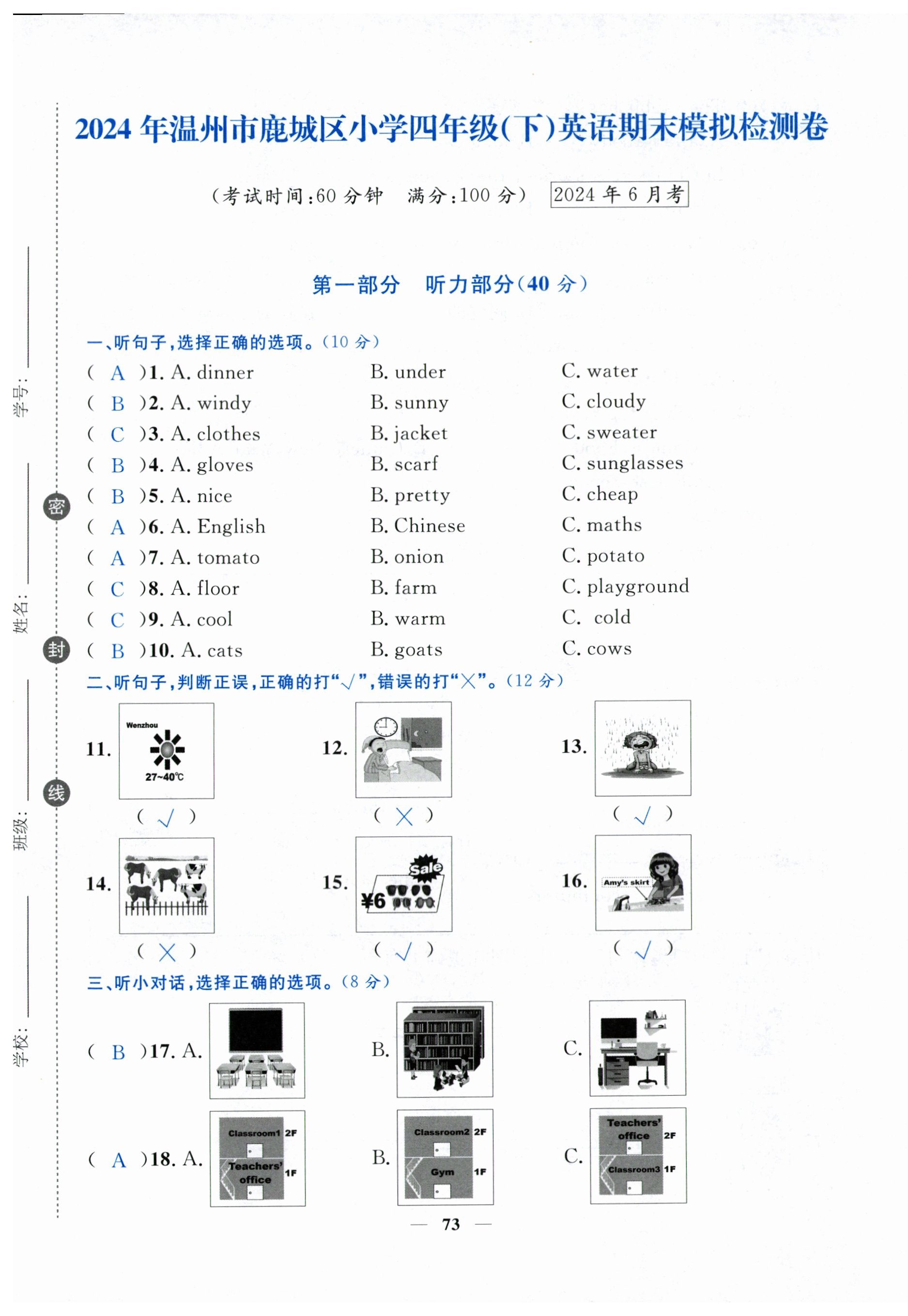 注:目前有些书本章节名称可能整理的还不是很完善,但都是按照顺序排列的,请同学们按照顺序仔细查找。练习册 2024年小学期末加油站四年级英语下册人教版 答案主要是用来给同学们做完题方便对答案用的,请勿直接抄袭。