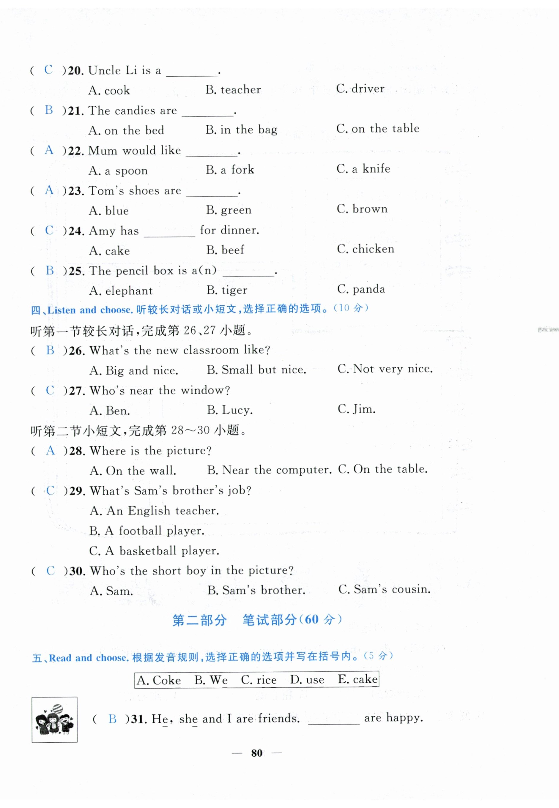 注:目前有些书本章节名称可能整理的还不是很完善,但都是按照顺序排列的,请同学们按照顺序仔细查找。练习册 2024年小学期末加油站四年级英语下册人教版 答案主要是用来给同学们做完题方便对答案用的,请勿直接抄袭。