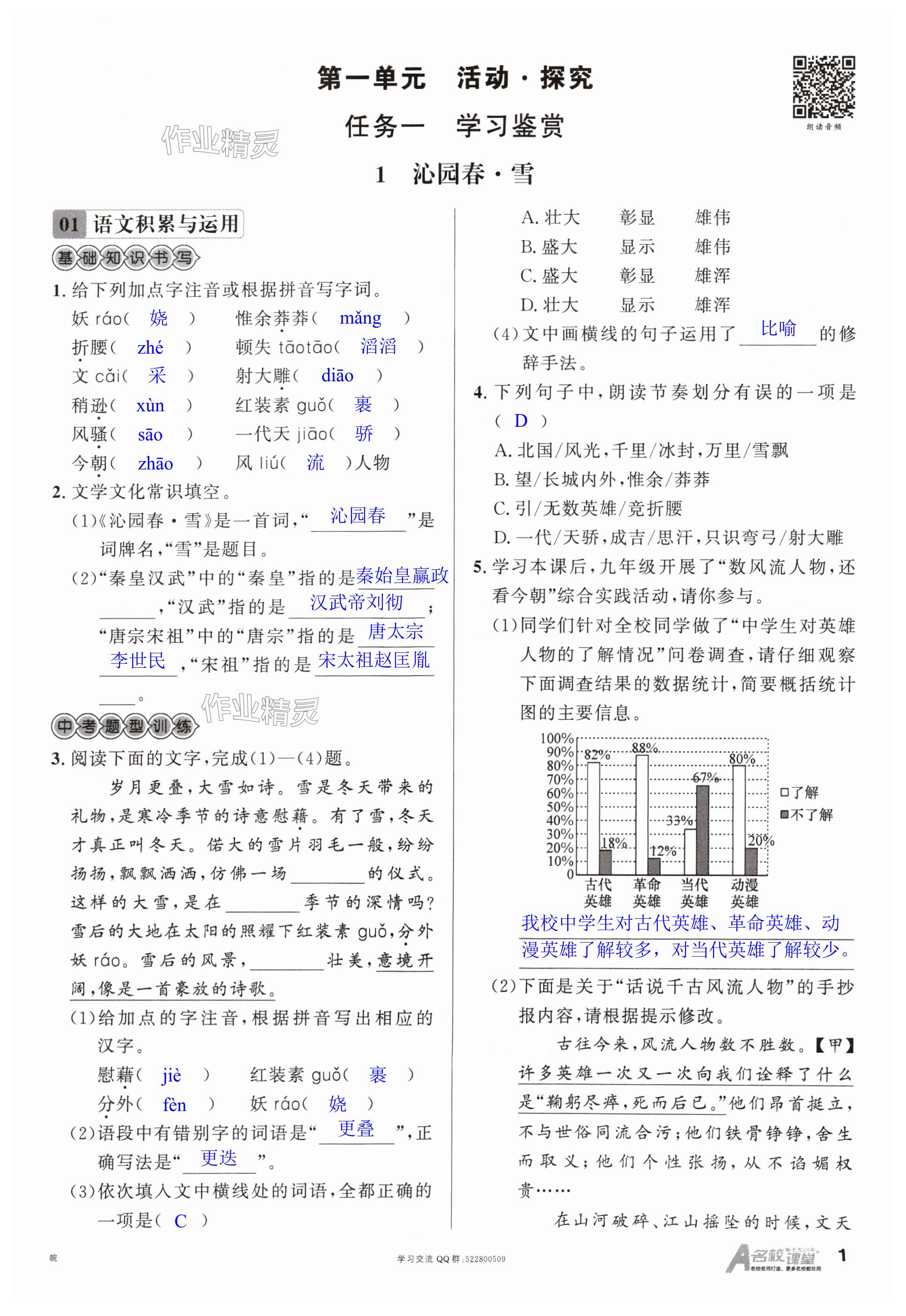 注:目前有些书本章节名称可能整理的还不是很完善,但都是按照顺序排列的,请同学们按照顺序仔细查找。练习册 2024年名校课堂九年级语文上册人教版安徽专版 答案主要是用来给同学们做完题方便对答案用的,请勿直接抄袭。