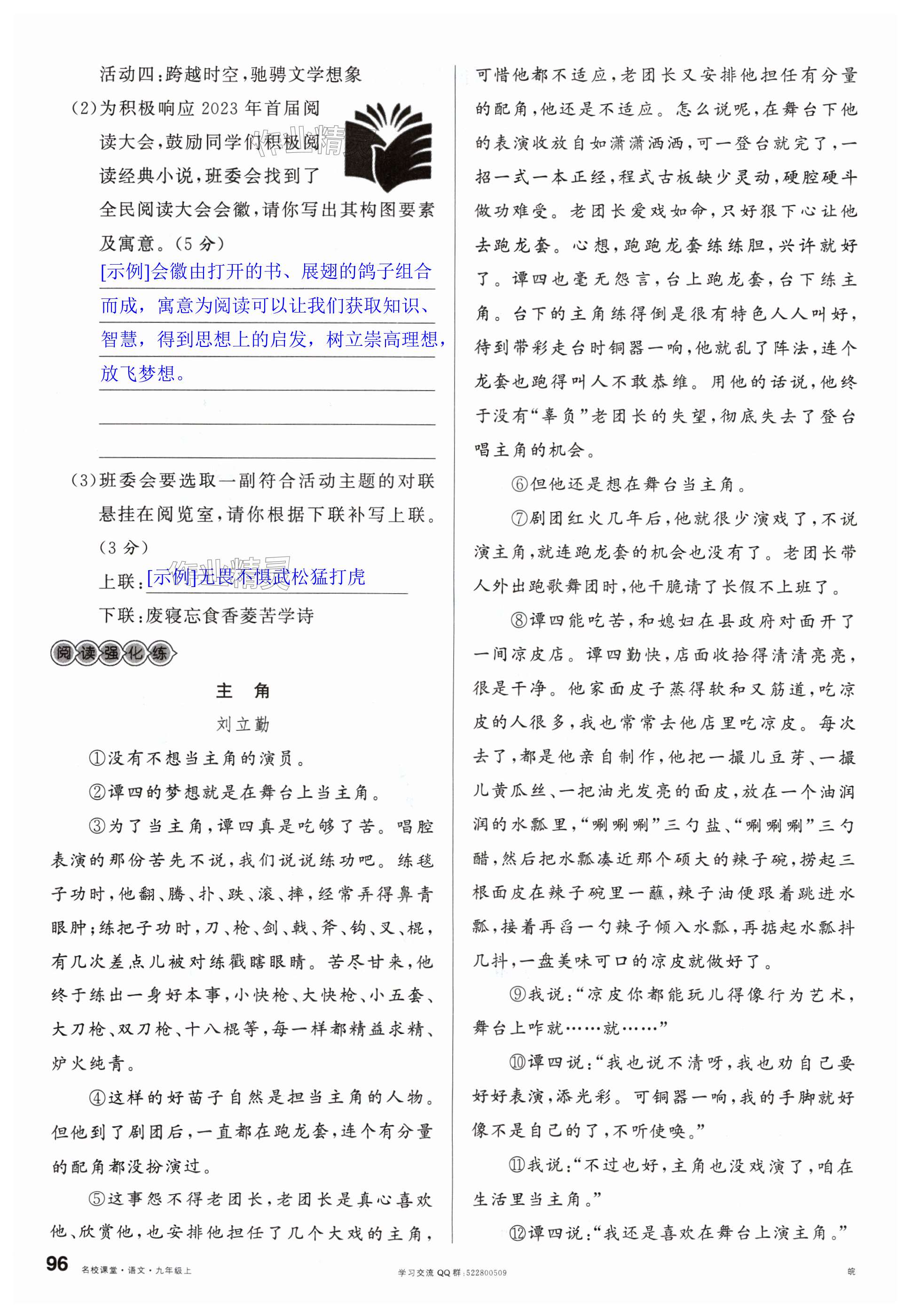 注:目前有些书本章节名称可能整理的还不是很完善,但都是按照顺序排列的,请同学们按照顺序仔细查找。练习册 2024年名校课堂九年级语文上册人教版安徽专版 答案主要是用来给同学们做完题方便对答案用的,请勿直接抄袭。
