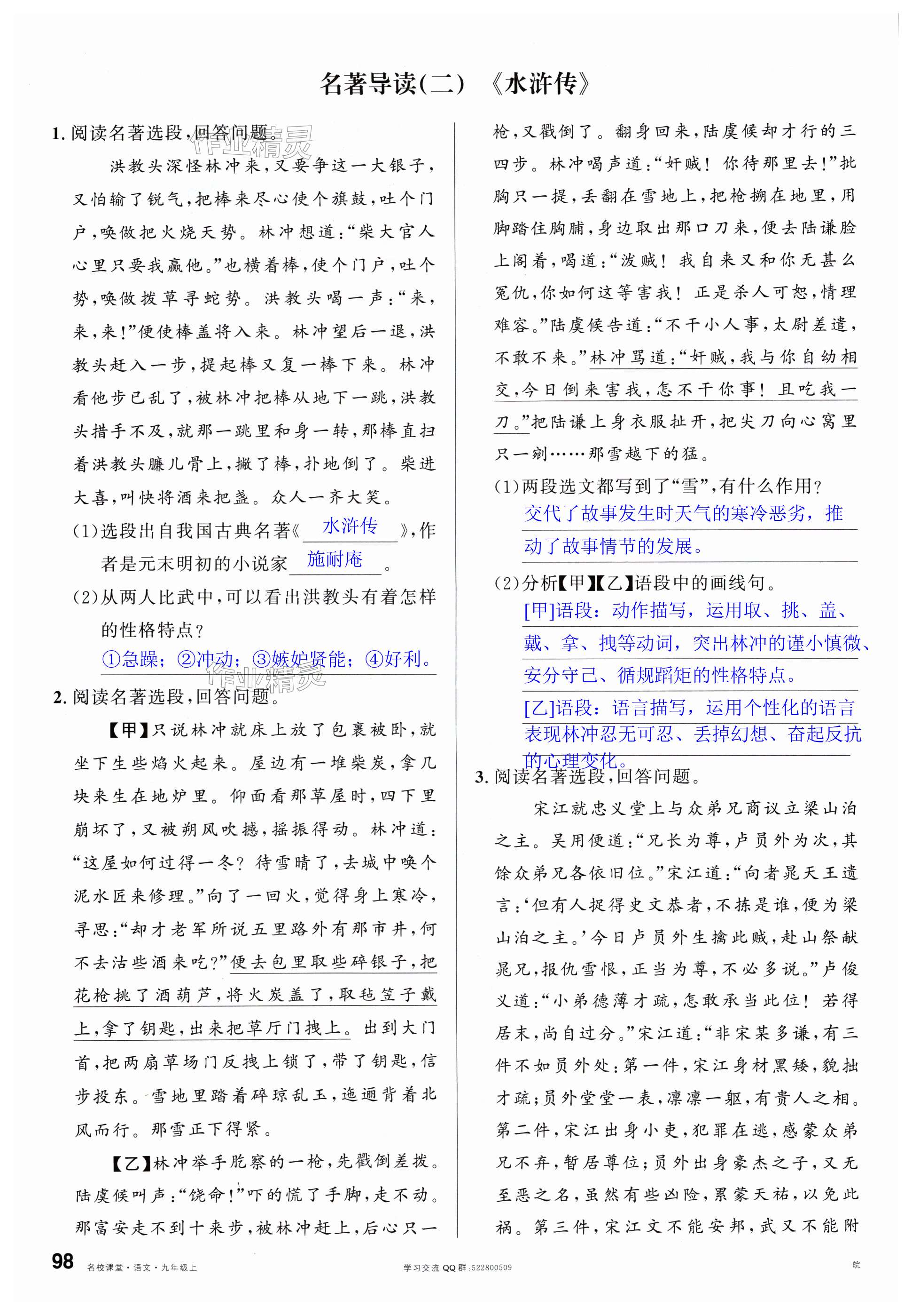 注:目前有些书本章节名称可能整理的还不是很完善,但都是按照顺序排列的,请同学们按照顺序仔细查找。练习册 2024年名校课堂九年级语文上册人教版安徽专版 答案主要是用来给同学们做完题方便对答案用的,请勿直接抄袭。