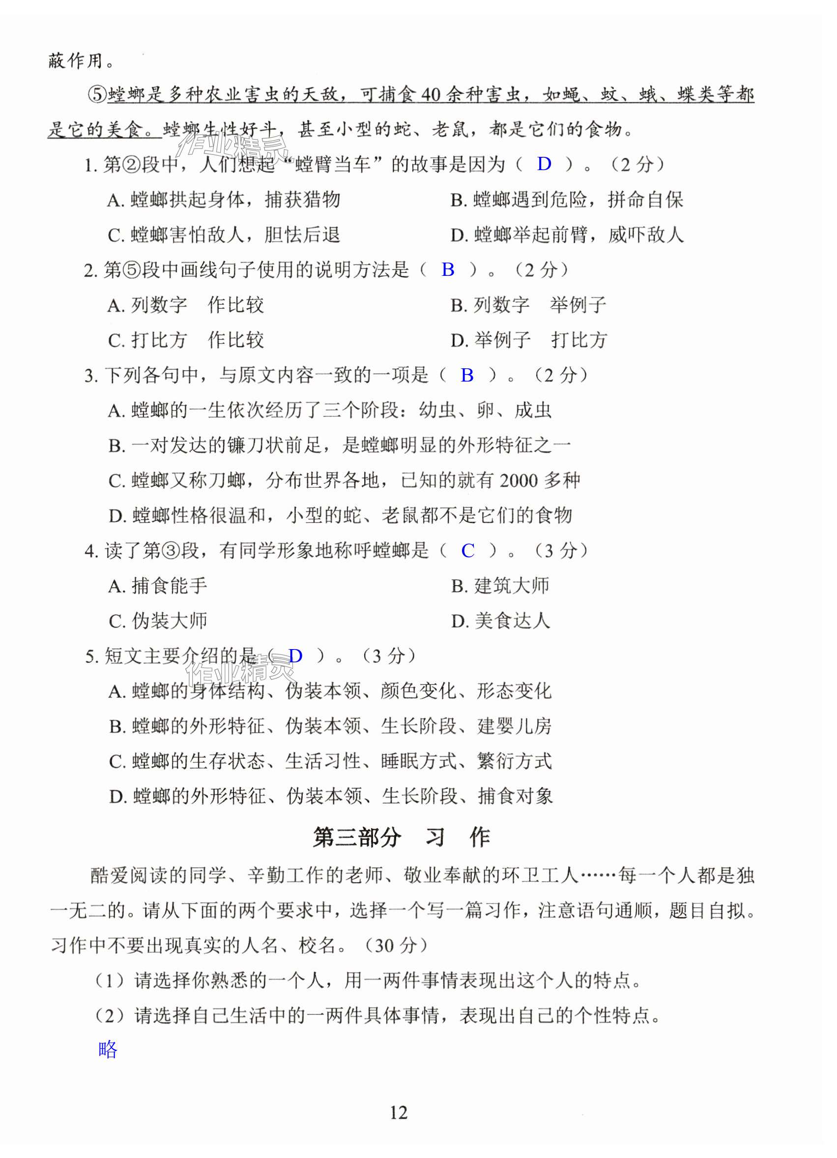 注:目前有些书本章节名称可能整理的还不是很完善,但都是按照顺序排列的,请同学们按照顺序仔细查找。练习册 2024年小学期末试卷汇编北京出版社五年级语文下册人教版 答案主要是用来给同学们做完题方便对答案用的,请勿直接抄袭。