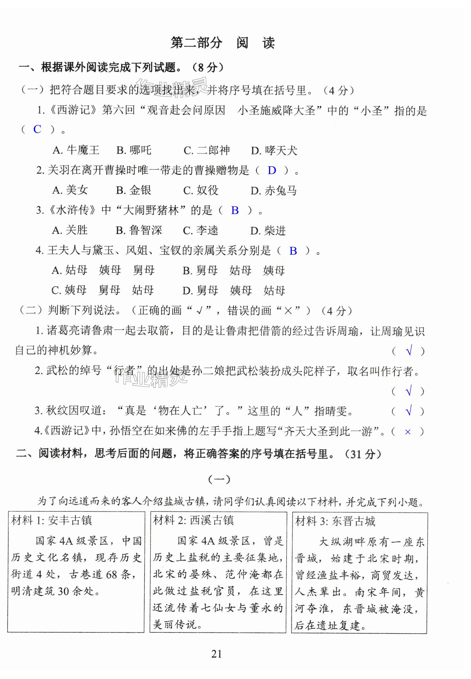注:目前有些书本章节名称可能整理的还不是很完善,但都是按照顺序排列的,请同学们按照顺序仔细查找。练习册 2024年小学期末试卷汇编北京出版社五年级语文下册人教版 答案主要是用来给同学们做完题方便对答案用的,请勿直接抄袭。