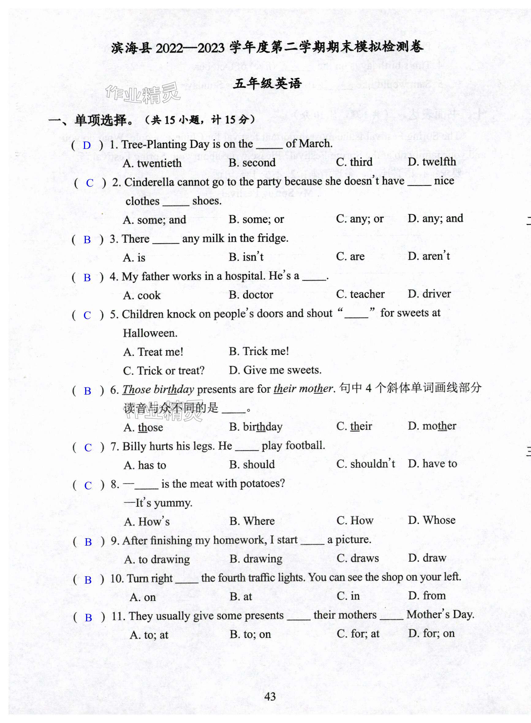 注:目前有些书本章节名称可能整理的还不是很完善,但都是按照顺序排列的,请同学们按照顺序仔细查找。练习册 2024年小学期末试卷汇编北京出版社五年级英语下册译林版 答案主要是用来给同学们做完题方便对答案用的,请勿直接抄袭。