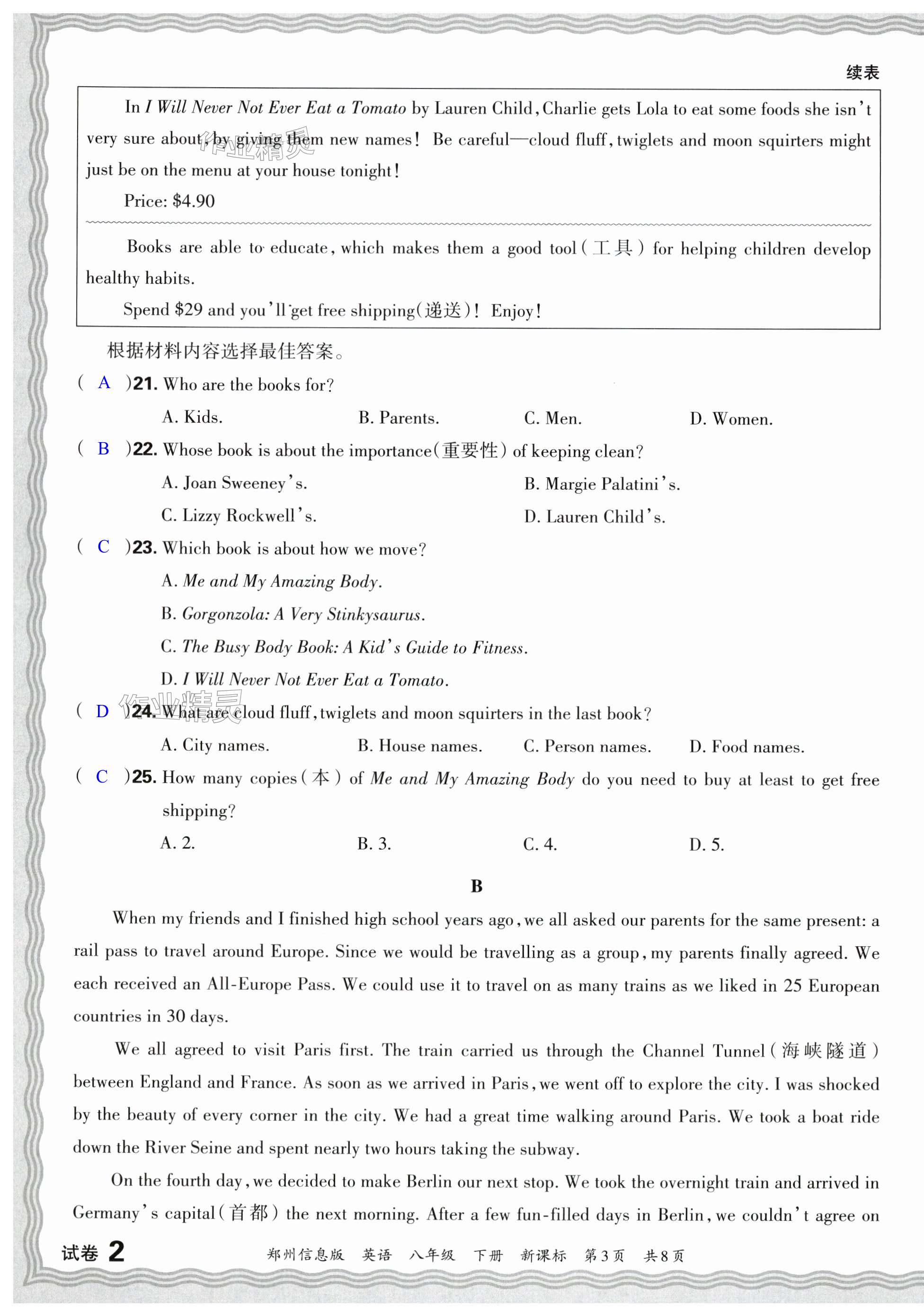 注:目前有些书本章节名称可能整理的还不是很完善,但都是按照顺序排列的,请同学们按照顺序仔细查找。练习册 2024年王朝霞期末真题精编八年级英语下册仁爱版郑州专版 答案主要是用来给同学们做完题方便对答案用的,请勿直接抄袭。