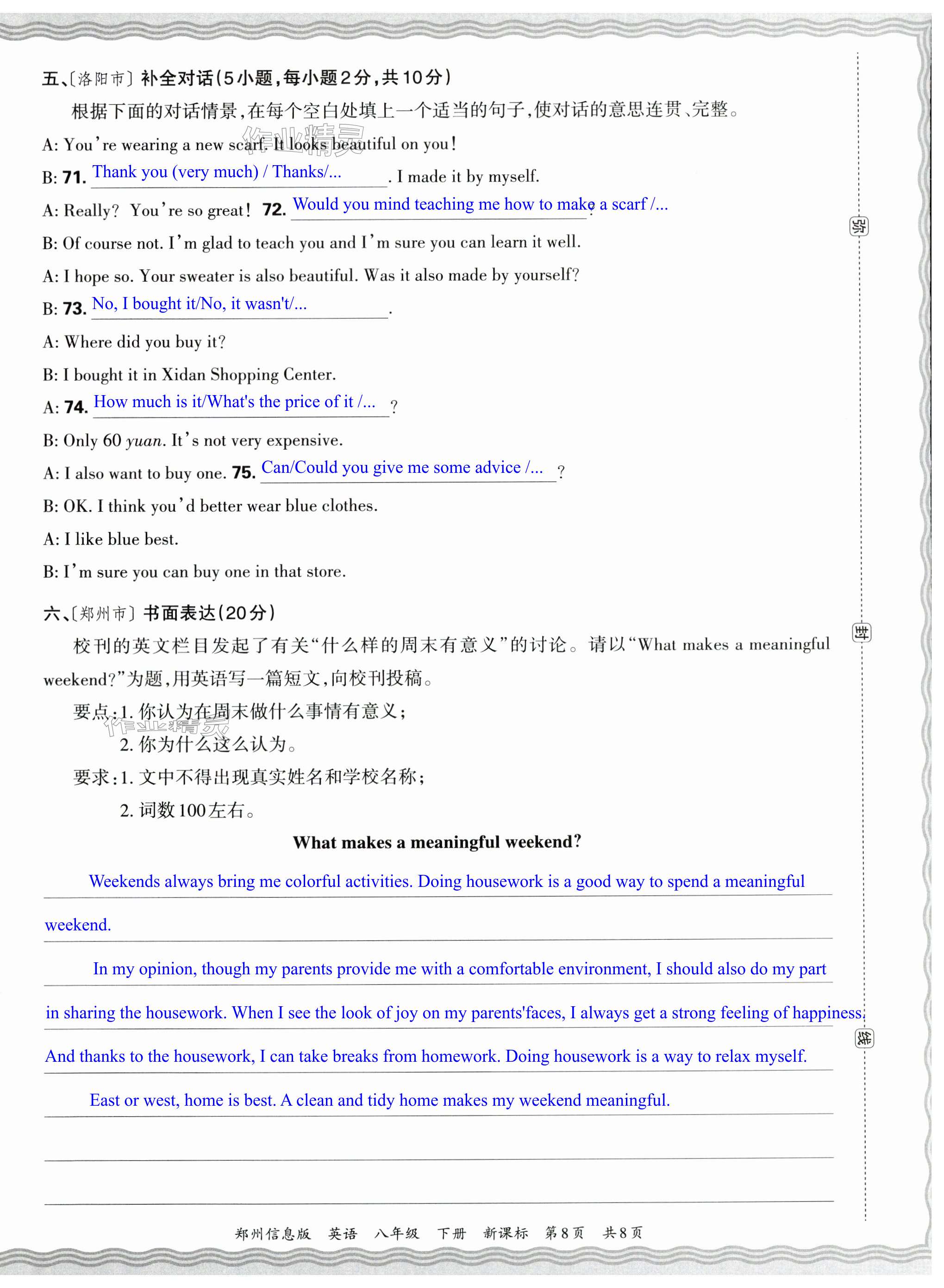 《2024年王朝霞期末真题精编八年级英语下册仁爱版郑州专版》