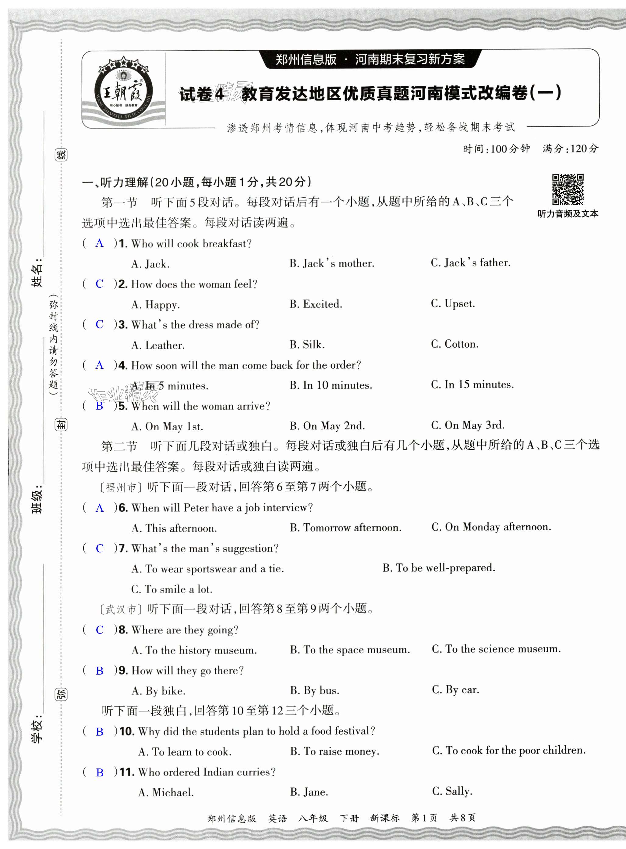 2024年王朝霞期末真题精编八年级英语下册仁爱版郑州专版