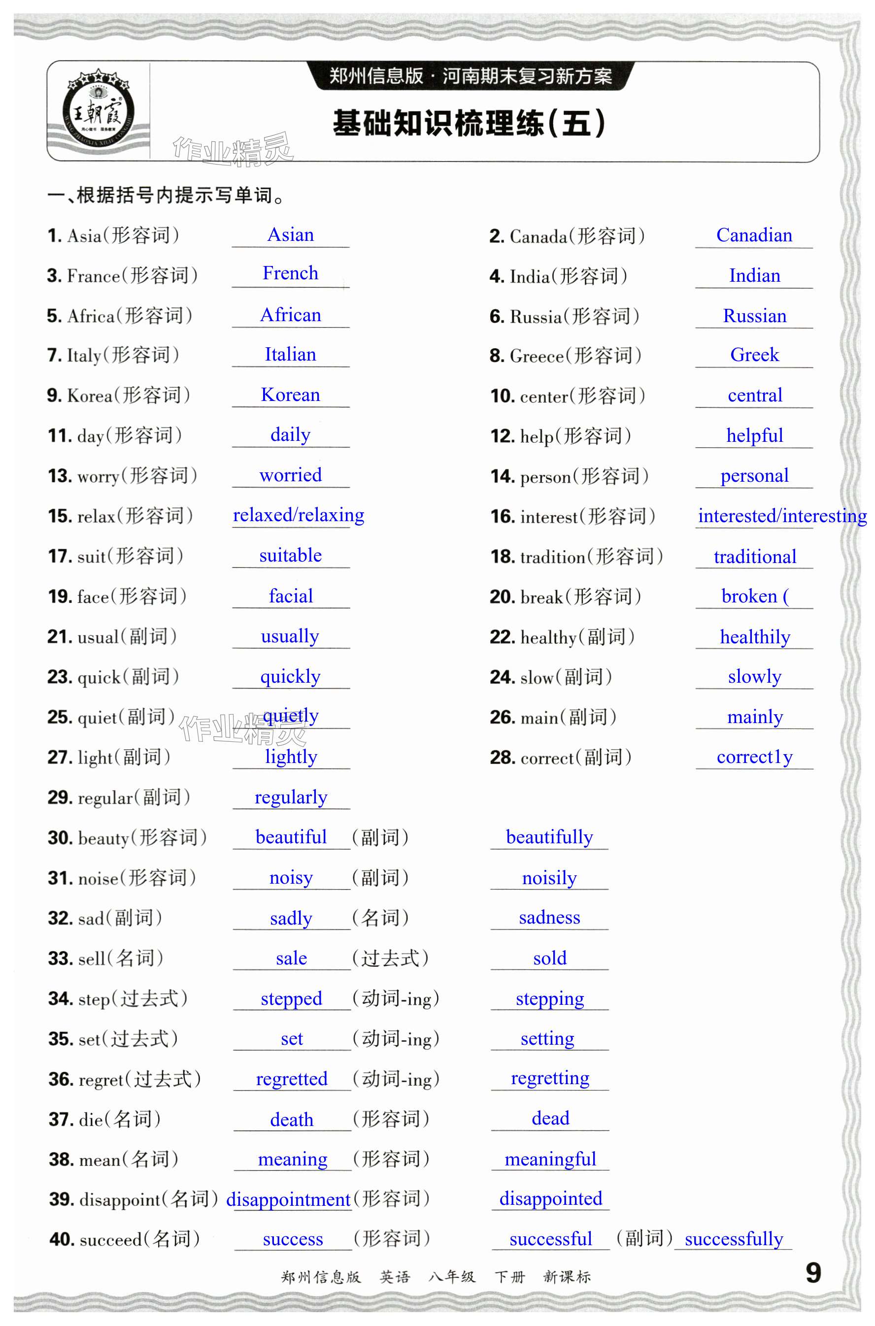 注:目前有些书本章节名称可能整理的还不是很完善,但都是按照顺序排列的,请同学们按照顺序仔细查找。练习册 2024年王朝霞期末真题精编八年级英语下册仁爱版郑州专版 答案主要是用来给同学们做完题方便对答案用的,请勿直接抄袭。