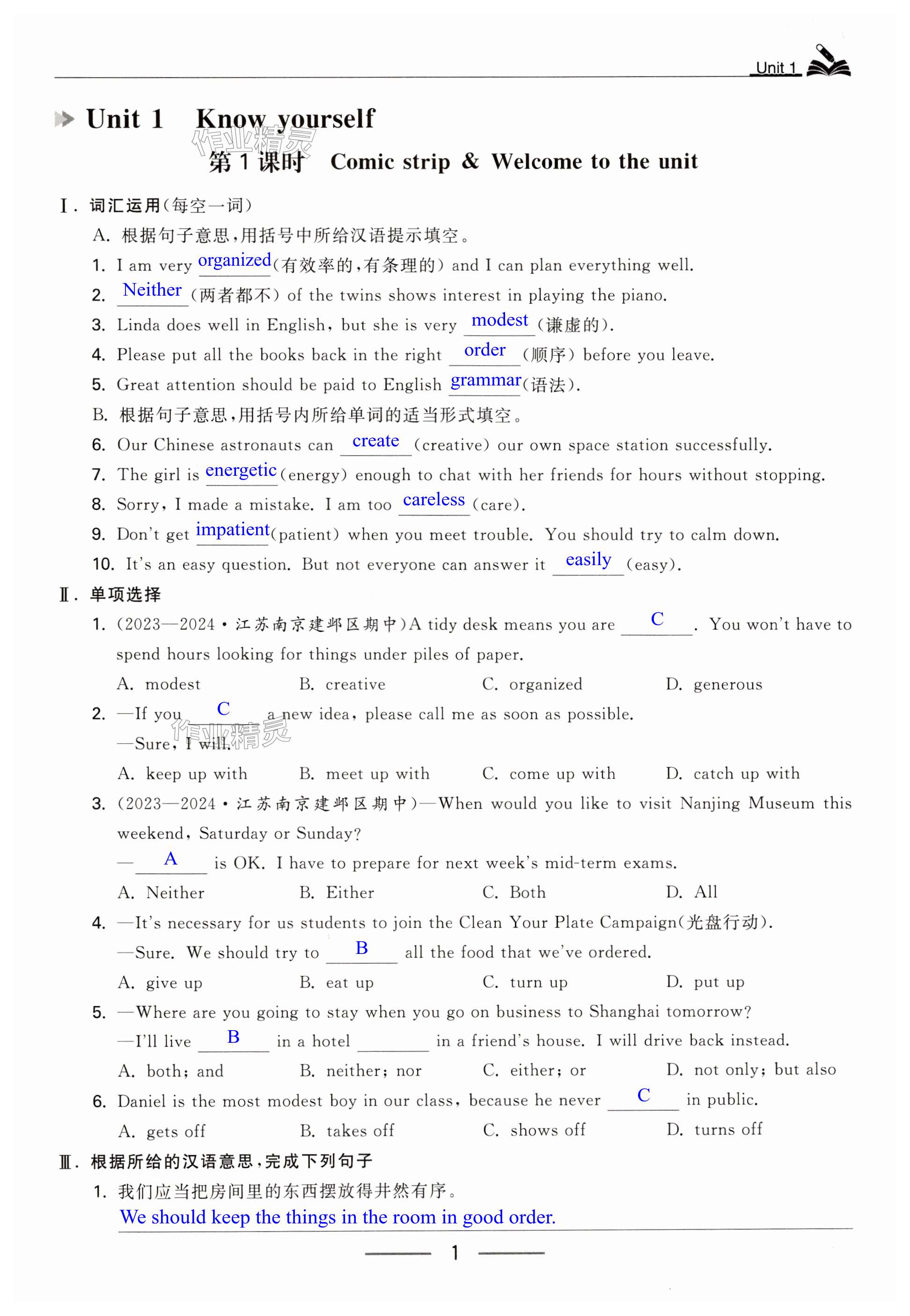 注:目前有些书本章节名称可能整理的还不是很完善,但都是按照顺序排列的,请同学们按照顺序仔细查找。练习册 2024年夺冠课课练九年级英语上册译林版 答案主要是用来给同学们做完题方便对答案用的,请勿直接抄袭。