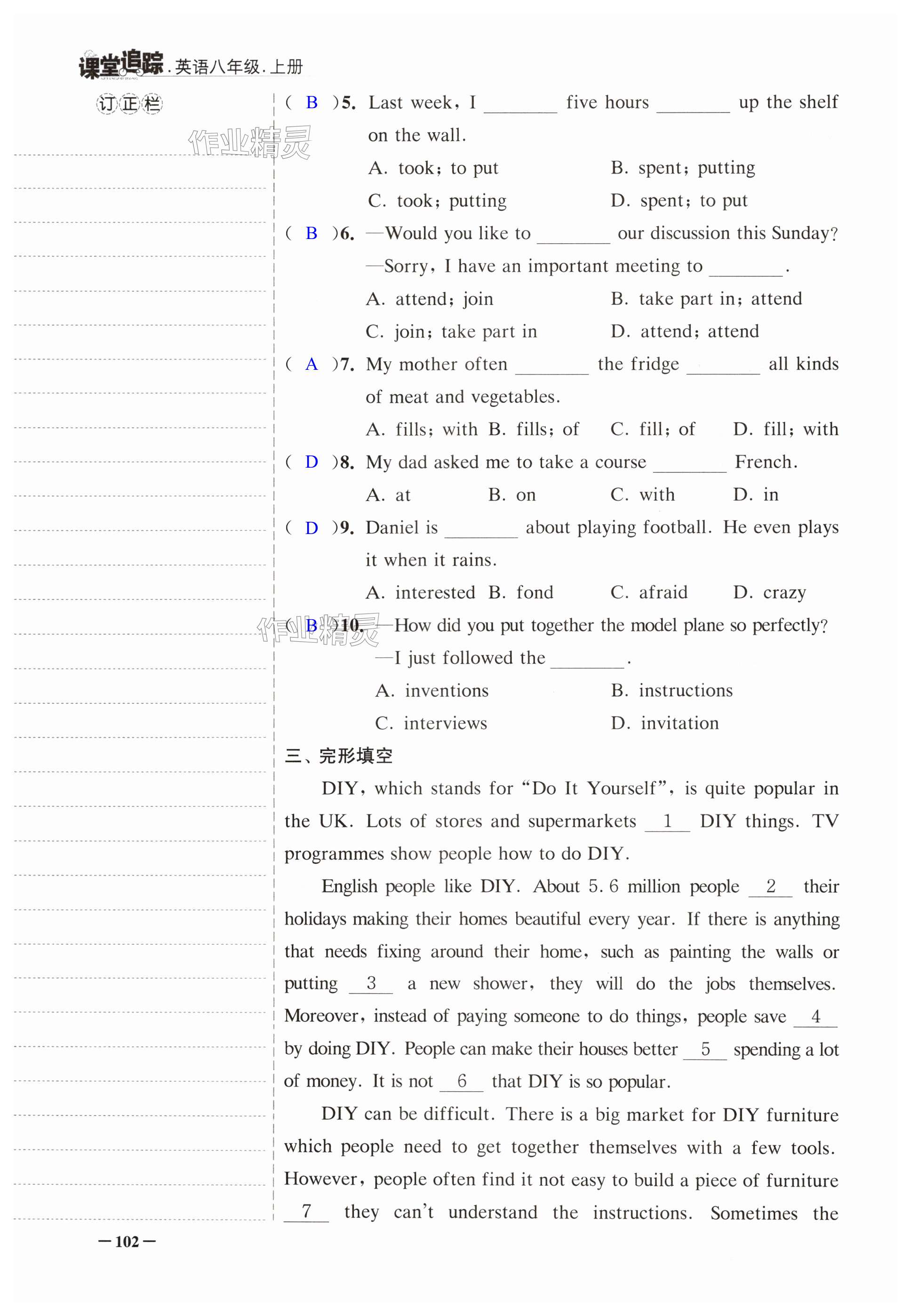 注:目前有些书本章节名称可能整理的还不是很完善,但都是按照顺序排列的,请同学们按照顺序仔细查找。练习册 2024年课堂追踪八年级英语上册译林版 答案主要是用来给同学们做完题方便对答案用的,请勿直接抄袭。