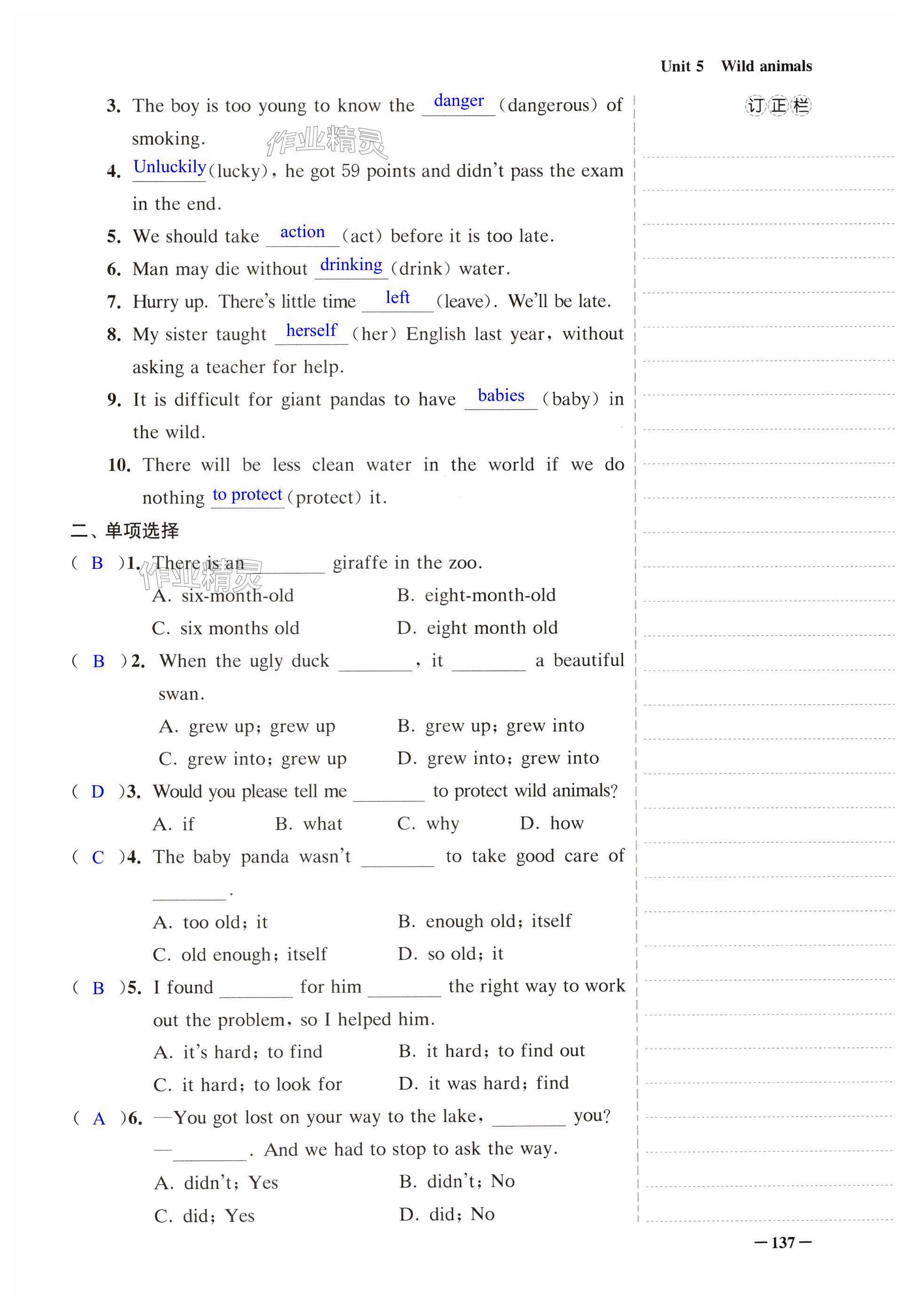 注:目前有些书本章节名称可能整理的还不是很完善,但都是按照顺序排列的,请同学们按照顺序仔细查找。练习册 2024年课堂追踪八年级英语上册译林版 答案主要是用来给同学们做完题方便对答案用的,请勿直接抄袭。