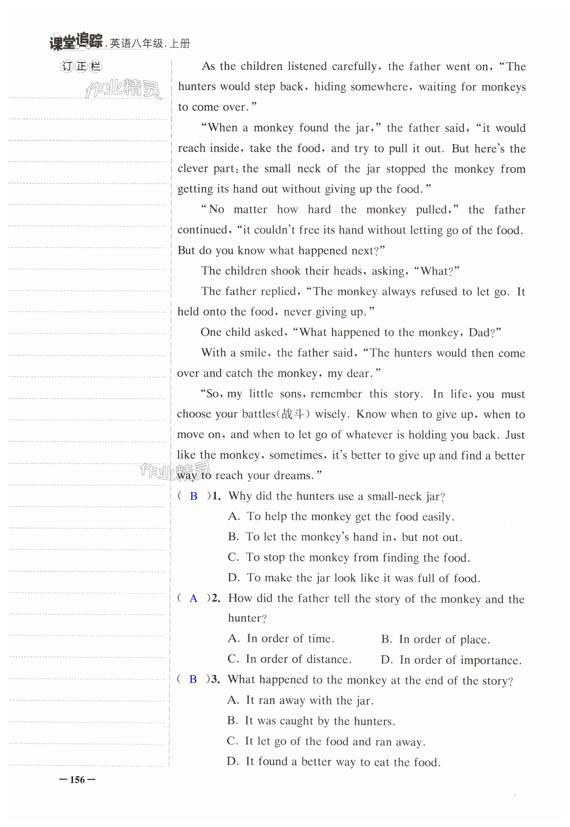 注:目前有些书本章节名称可能整理的还不是很完善,但都是按照顺序排列的,请同学们按照顺序仔细查找。练习册 2024年课堂追踪八年级英语上册译林版 答案主要是用来给同学们做完题方便对答案用的,请勿直接抄袭。