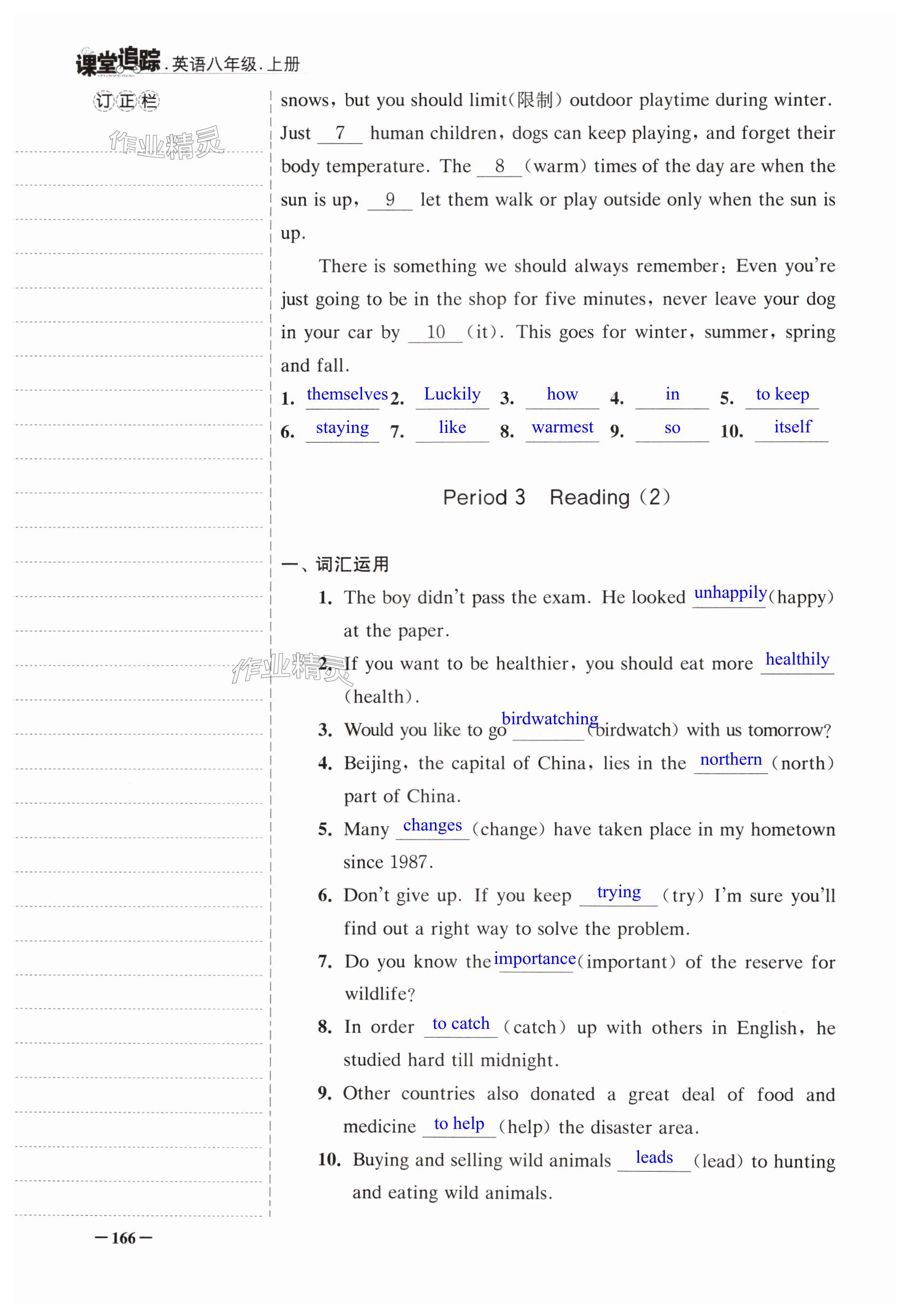 注:目前有些书本章节名称可能整理的还不是很完善,但都是按照顺序排列的,请同学们按照顺序仔细查找。练习册 2024年课堂追踪八年级英语上册译林版 答案主要是用来给同学们做完题方便对答案用的,请勿直接抄袭。