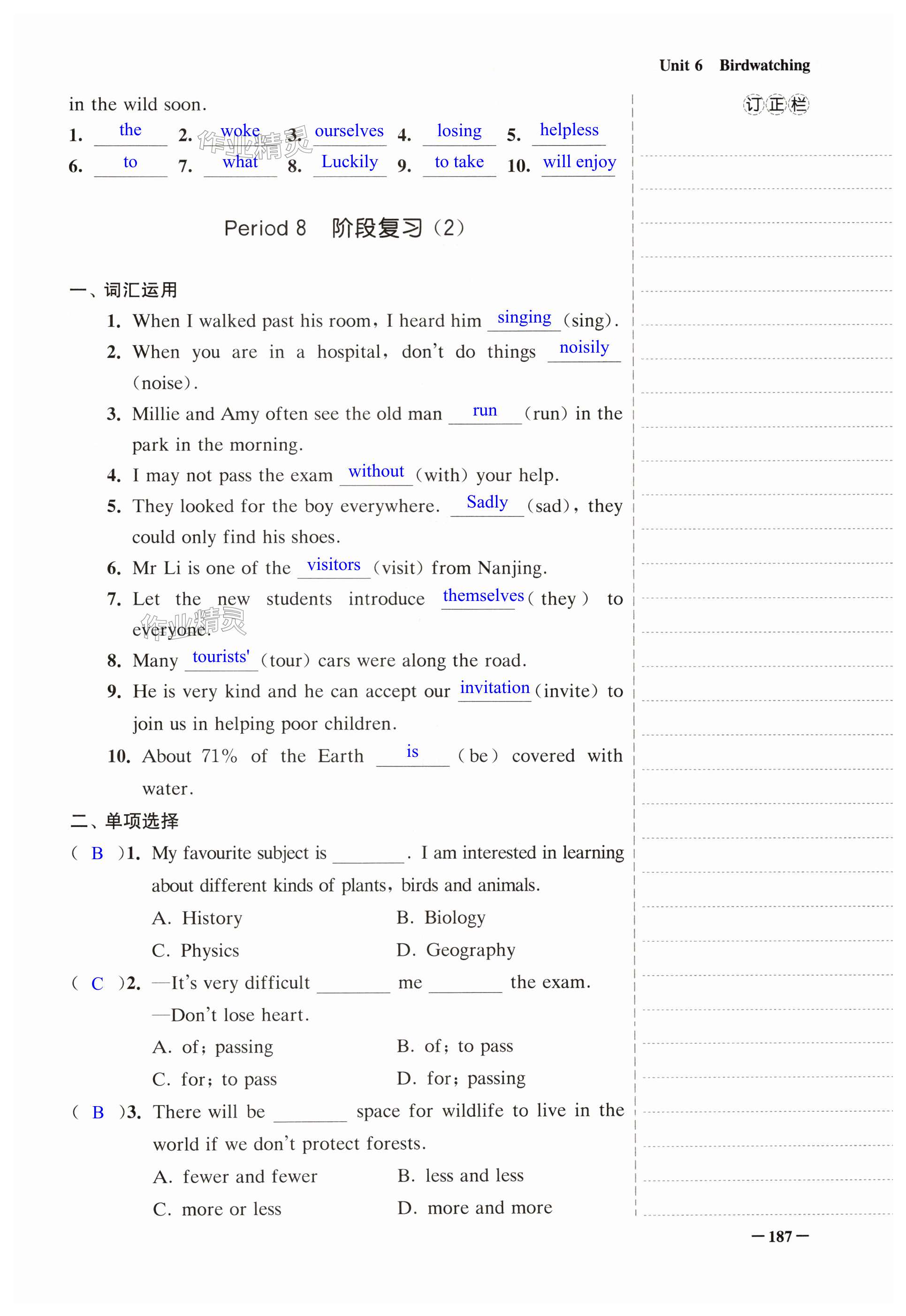 注:目前有些书本章节名称可能整理的还不是很完善,但都是按照顺序排列的,请同学们按照顺序仔细查找。练习册 2024年课堂追踪八年级英语上册译林版 答案主要是用来给同学们做完题方便对答案用的,请勿直接抄袭。