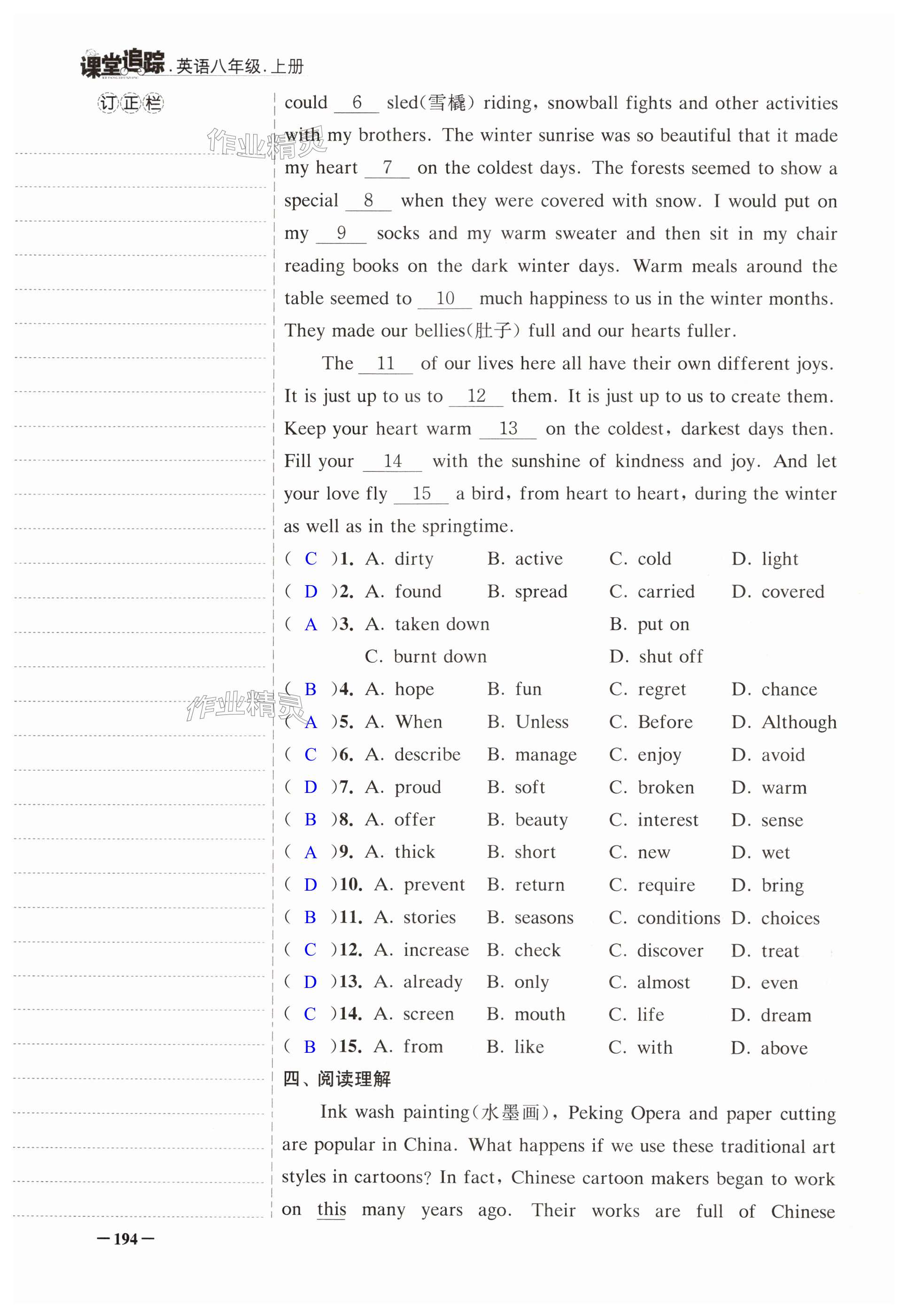 注:目前有些书本章节名称可能整理的还不是很完善,但都是按照顺序排列的,请同学们按照顺序仔细查找。练习册 2024年课堂追踪八年级英语上册译林版 答案主要是用来给同学们做完题方便对答案用的,请勿直接抄袭。