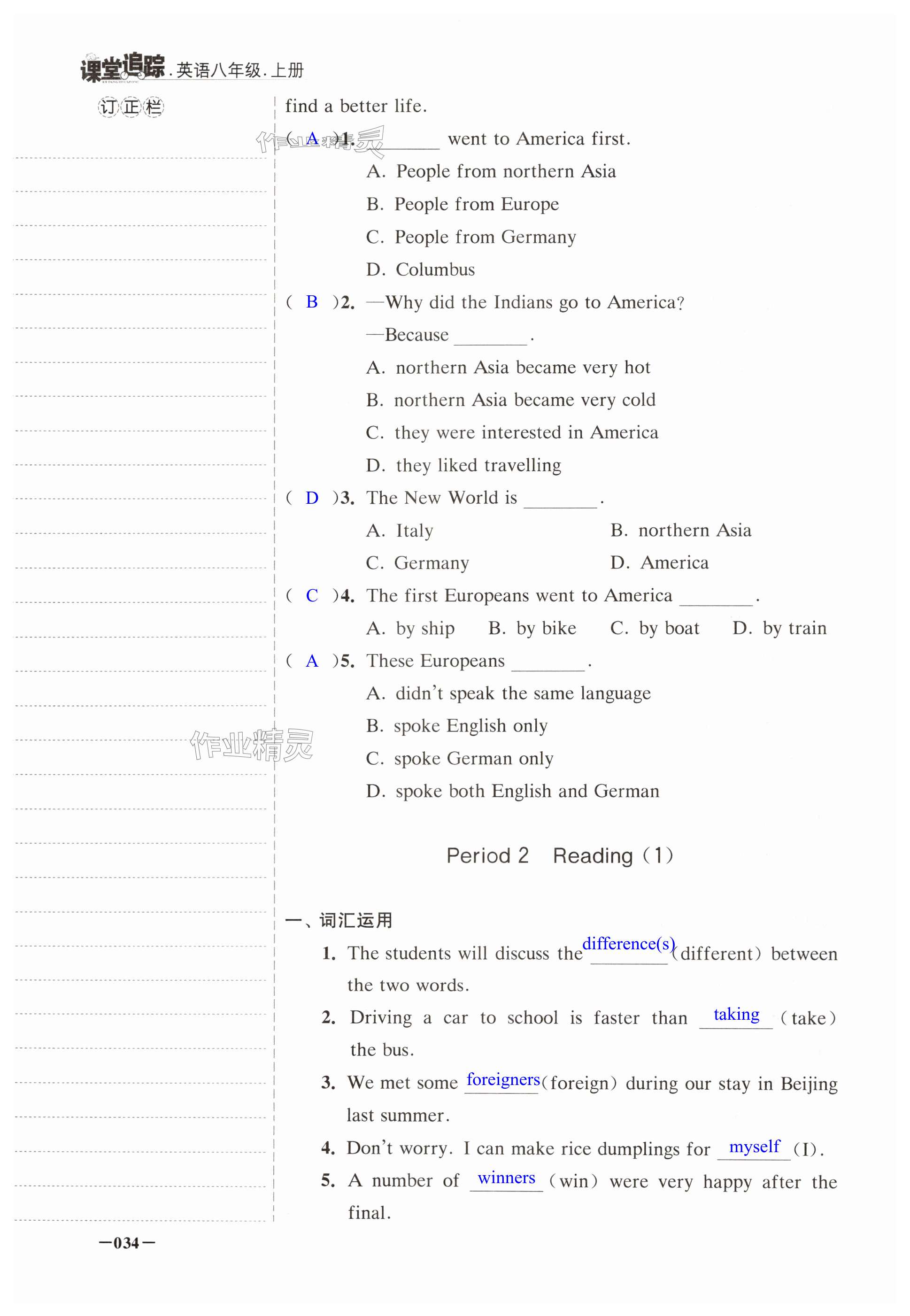 注:目前有些书本章节名称可能整理的还不是很完善,但都是按照顺序排列的,请同学们按照顺序仔细查找。练习册 2024年课堂追踪八年级英语上册译林版 答案主要是用来给同学们做完题方便对答案用的,请勿直接抄袭。