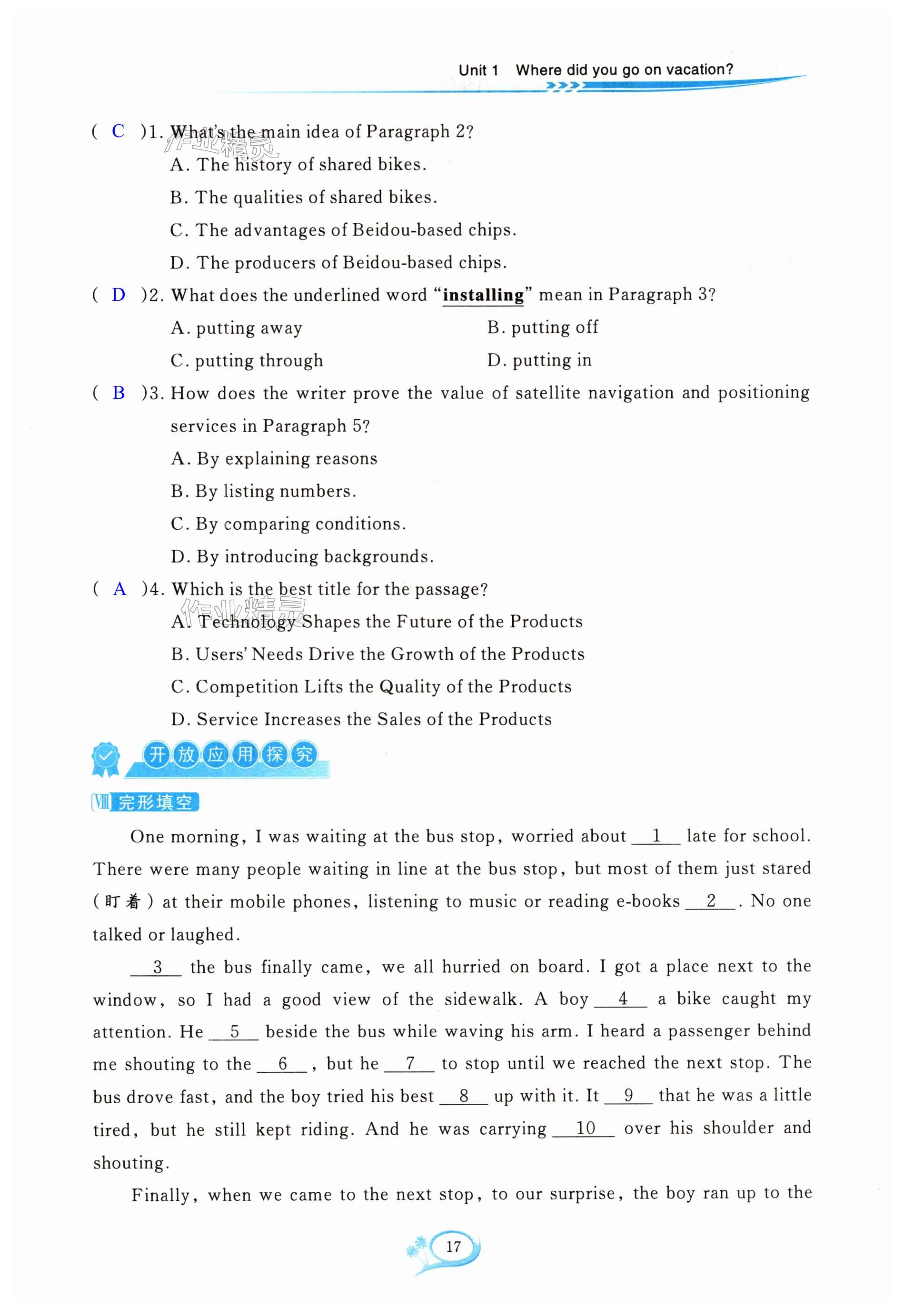 注:目前有些书本章节名称可能整理的还不是很完善,但都是按照顺序排列的,请同学们按照顺序仔细查找。练习册 2024年全优方案夯实与提高八年级英语上册人教版浙江专版 答案主要是用来给同学们做完题方便对答案用的,请勿直接抄袭。
