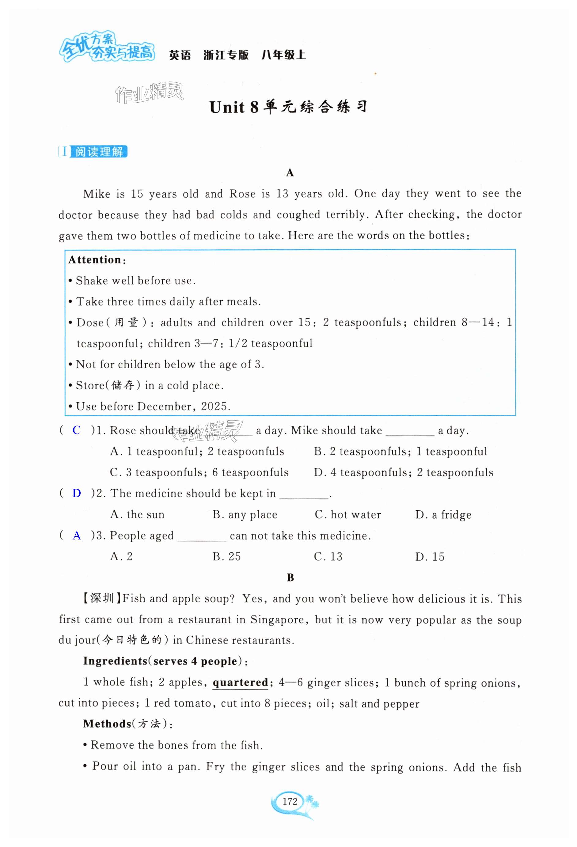 注:目前有些书本章节名称可能整理的还不是很完善,但都是按照顺序排列的,请同学们按照顺序仔细查找。练习册 2024年全优方案夯实与提高八年级英语上册人教版浙江专版 答案主要是用来给同学们做完题方便对答案用的,请勿直接抄袭。