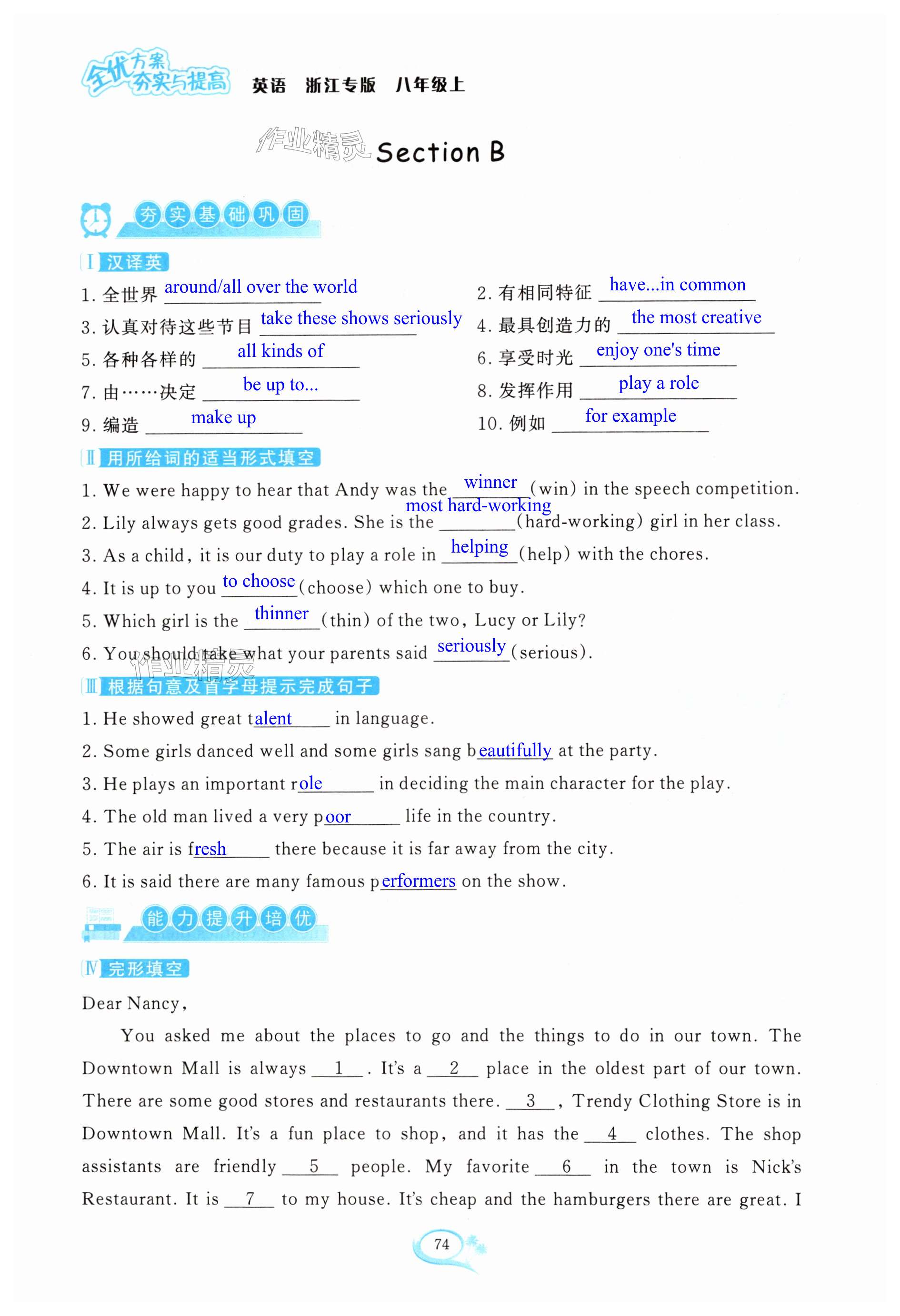 注:目前有些书本章节名称可能整理的还不是很完善,但都是按照顺序排列的,请同学们按照顺序仔细查找。练习册 2024年全优方案夯实与提高八年级英语上册人教版浙江专版 答案主要是用来给同学们做完题方便对答案用的,请勿直接抄袭。