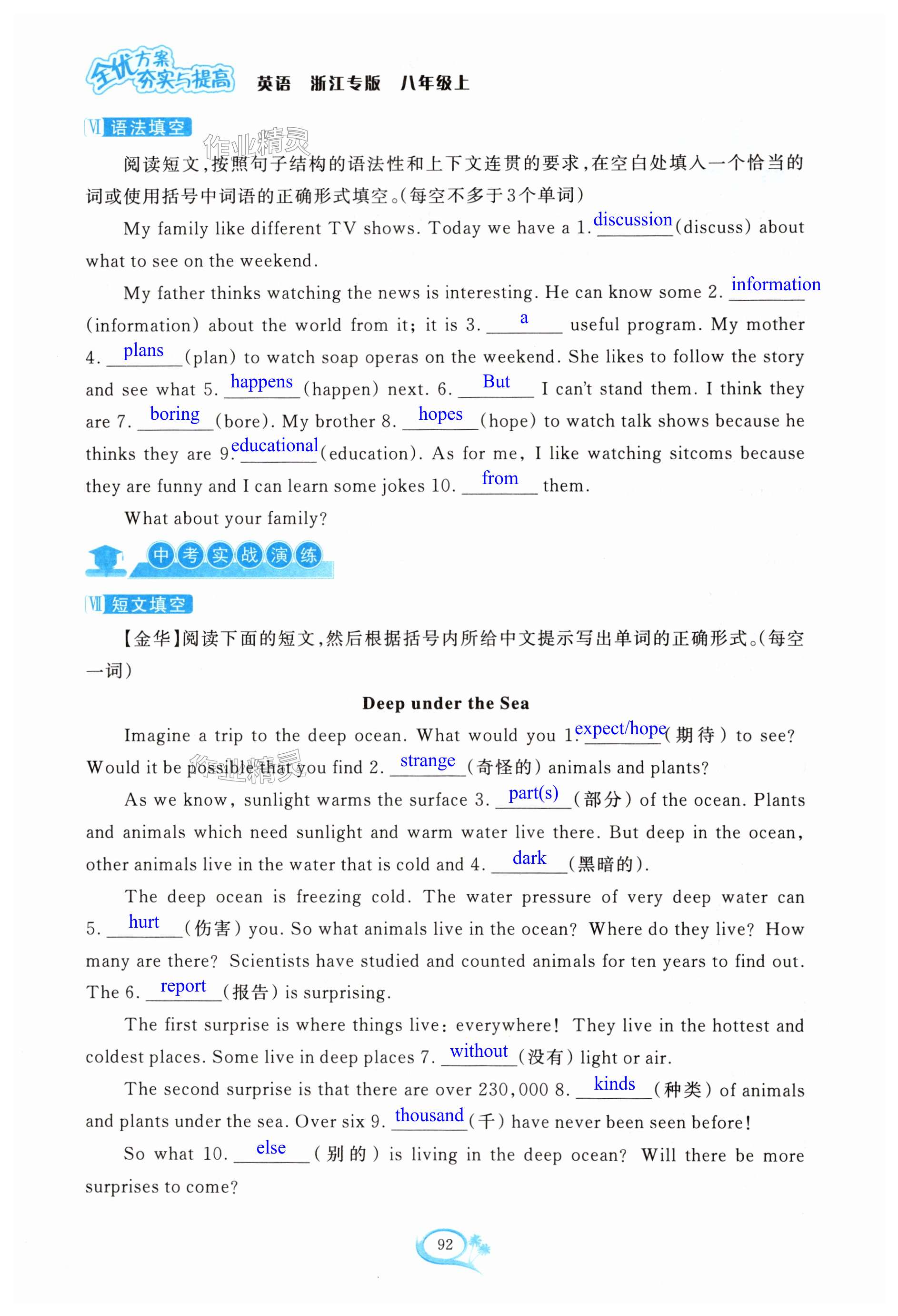 注:目前有些书本章节名称可能整理的还不是很完善,但都是按照顺序排列的,请同学们按照顺序仔细查找。练习册 2024年全优方案夯实与提高八年级英语上册人教版浙江专版 答案主要是用来给同学们做完题方便对答案用的,请勿直接抄袭。