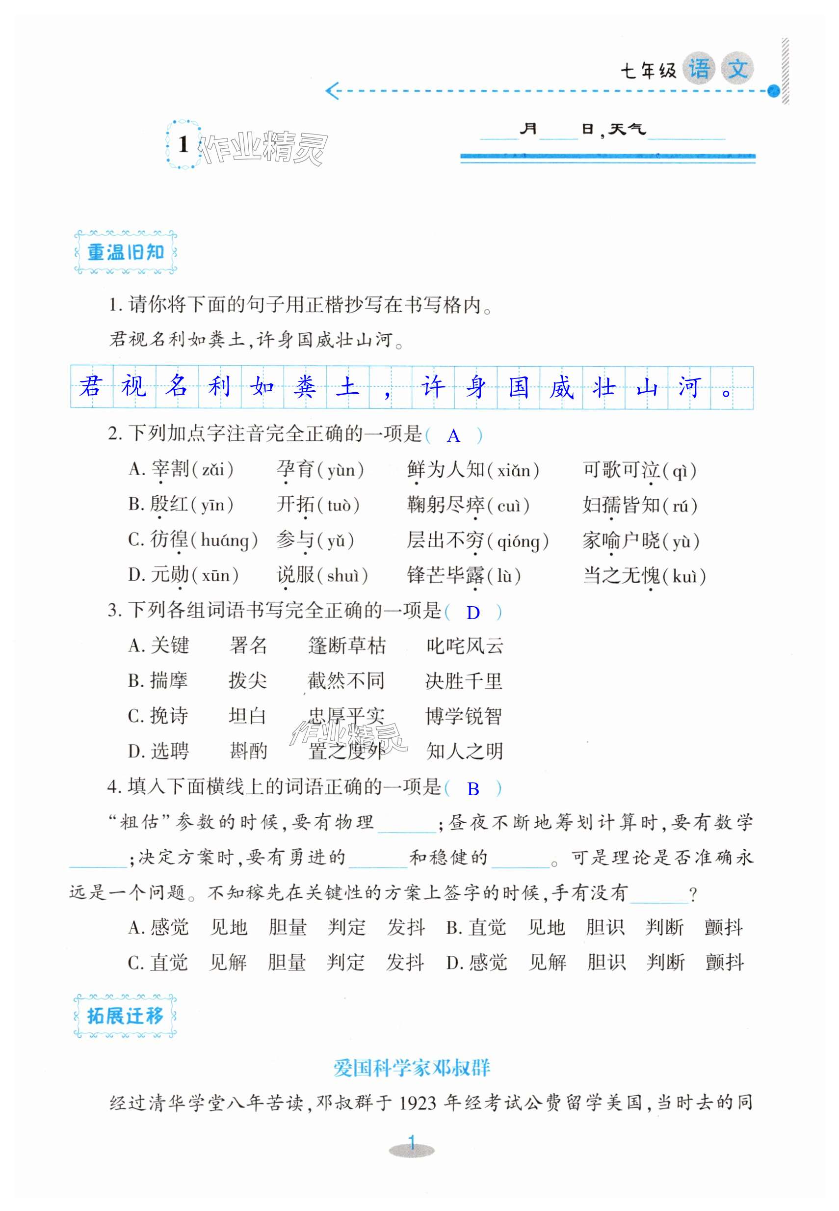 注:目前有些书本章节名称可能整理的还不是很完善,但都是按照顺序排列的,请同学们按照顺序仔细查找。练习册2024年暑假作业及活动新疆文化出版社七年级语文答案主要是用来给同学们做完题方便对答案用的,请勿直接抄袭。