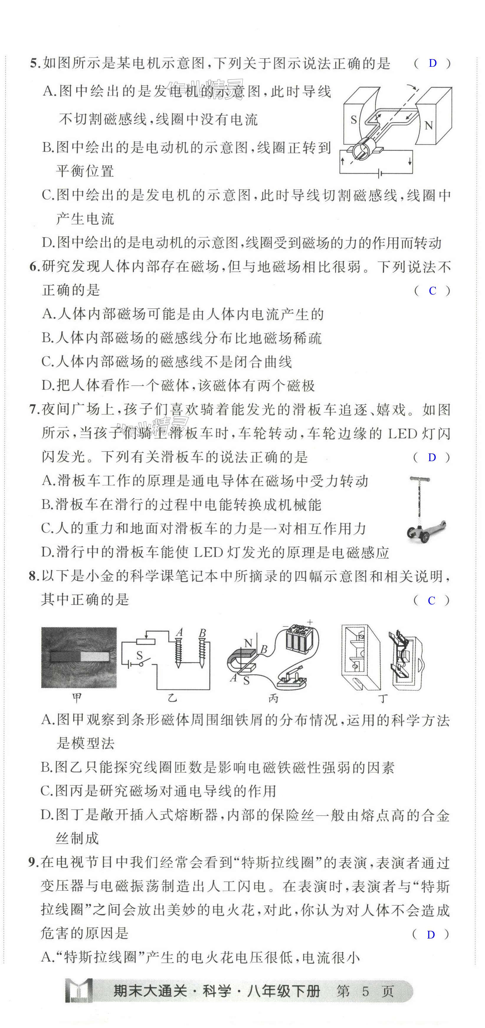 注:目前有些书本章节名称可能整理的还不是很完善,但都是按照顺序排列的,请同学们按照顺序仔细查找。练习册 2024年名师面对面期末大通关八年级科学下册浙教版 答案主要是用来给同学们做完题方便对答案用的,请勿直接抄袭。