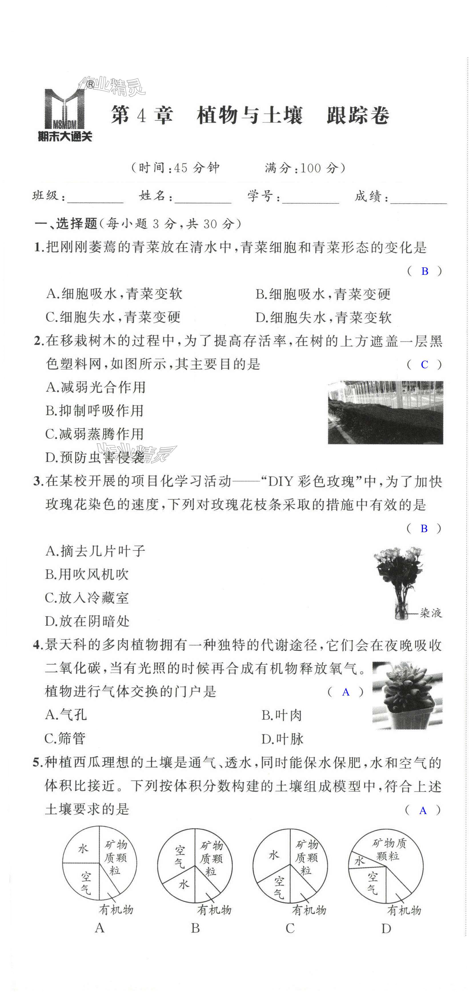 注:目前有些书本章节名称可能整理的还不是很完善,但都是按照顺序排列的,请同学们按照顺序仔细查找。练习册 2024年名师面对面期末大通关八年级科学下册浙教版 答案主要是用来给同学们做完题方便对答案用的,请勿直接抄袭。