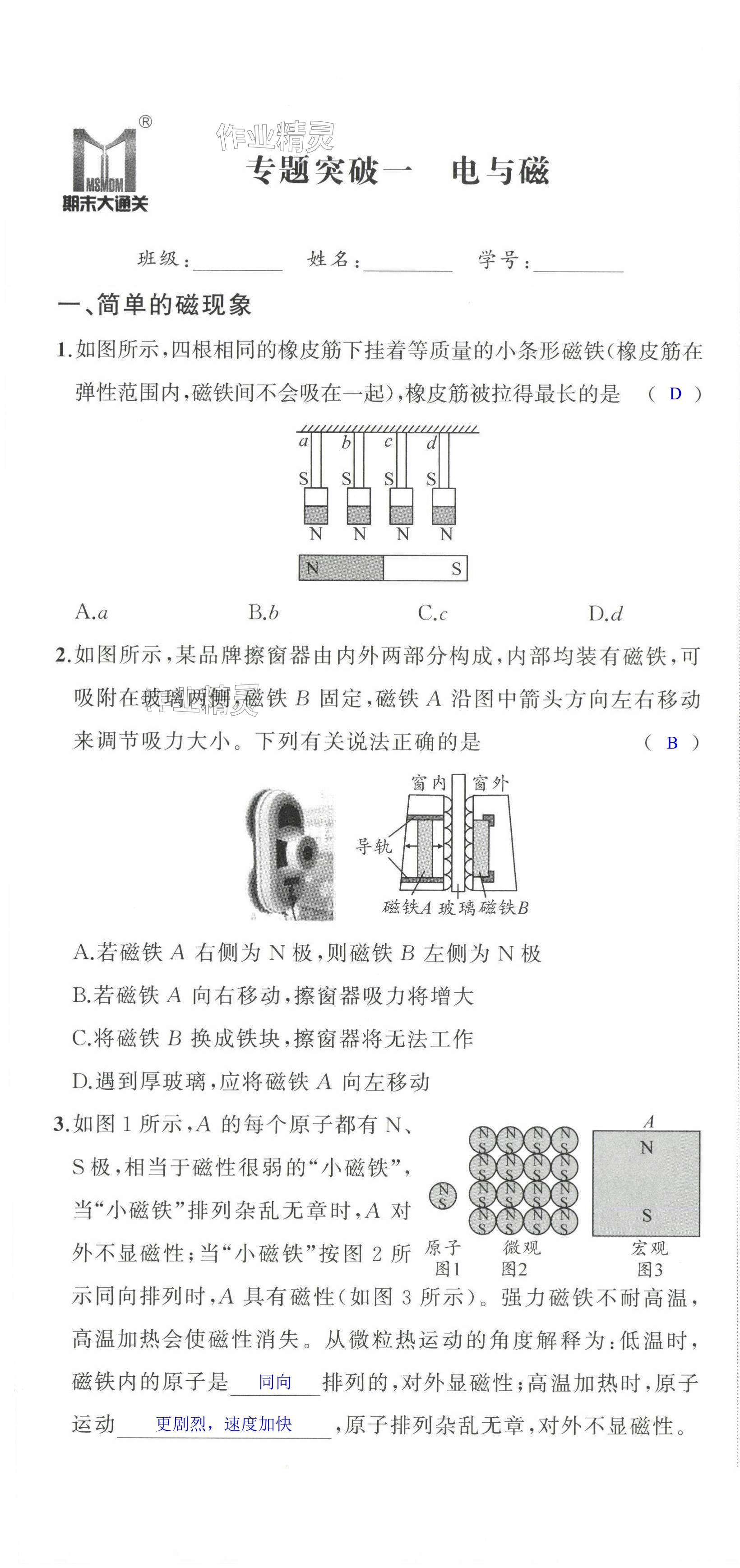 注:目前有些书本章节名称可能整理的还不是很完善,但都是按照顺序排列的,请同学们按照顺序仔细查找。练习册 2024年名师面对面期末大通关八年级科学下册浙教版 答案主要是用来给同学们做完题方便对答案用的,请勿直接抄袭。