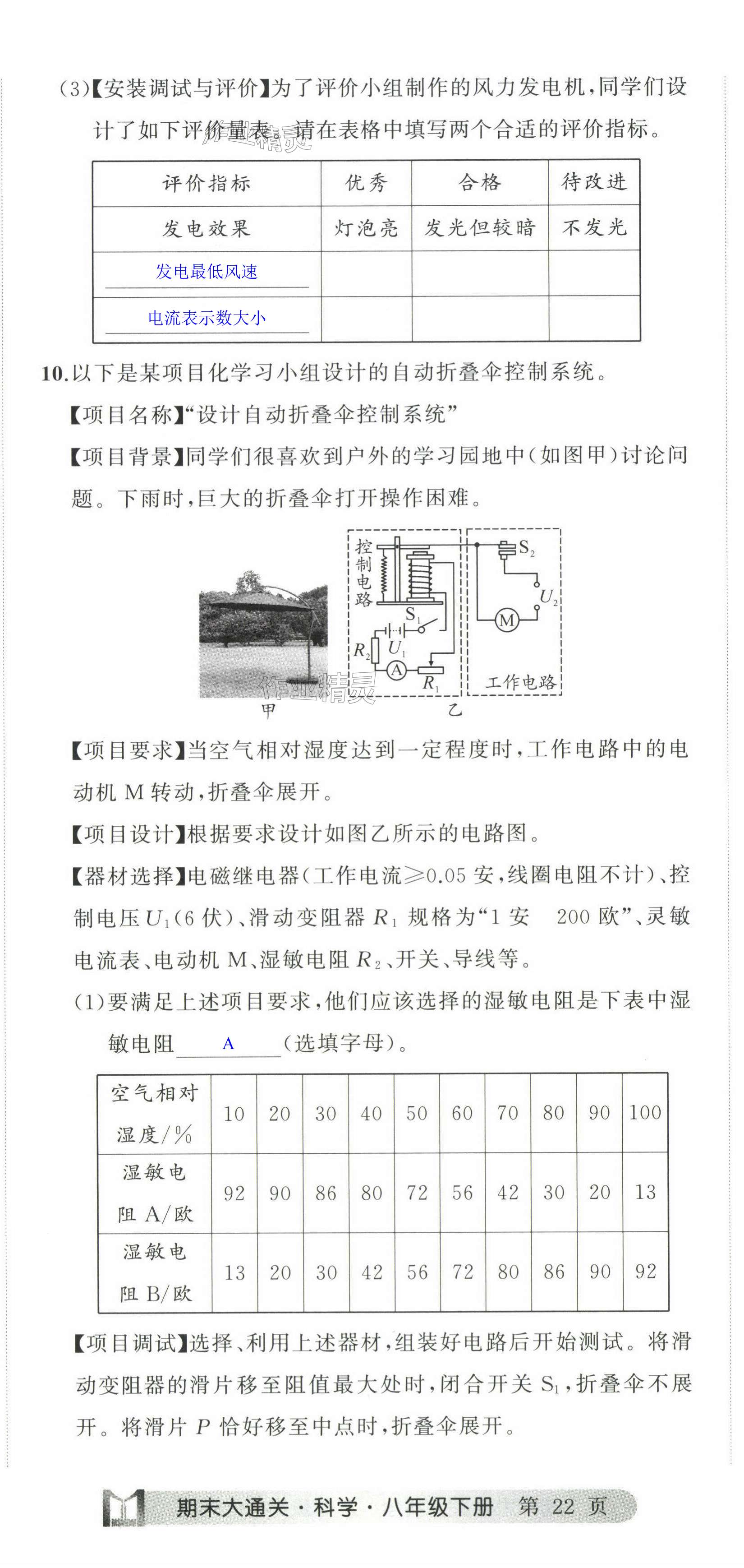 2024年名师面对面期末大通关八年级科学下册浙教版