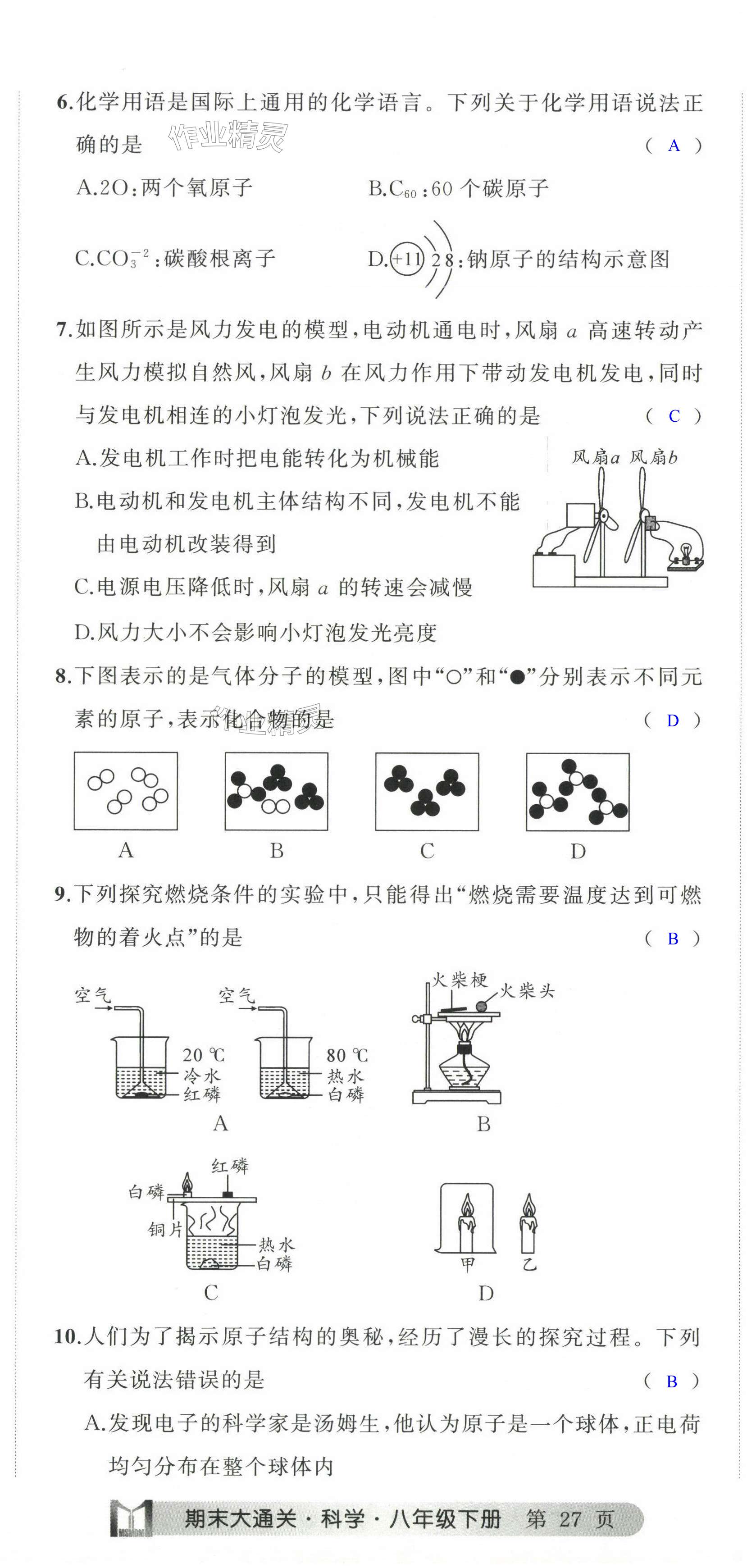 注:目前有些书本章节名称可能整理的还不是很完善,但都是按照顺序排列的,请同学们按照顺序仔细查找。练习册 2024年名师面对面期末大通关八年级科学下册浙教版 答案主要是用来给同学们做完题方便对答案用的,请勿直接抄袭。