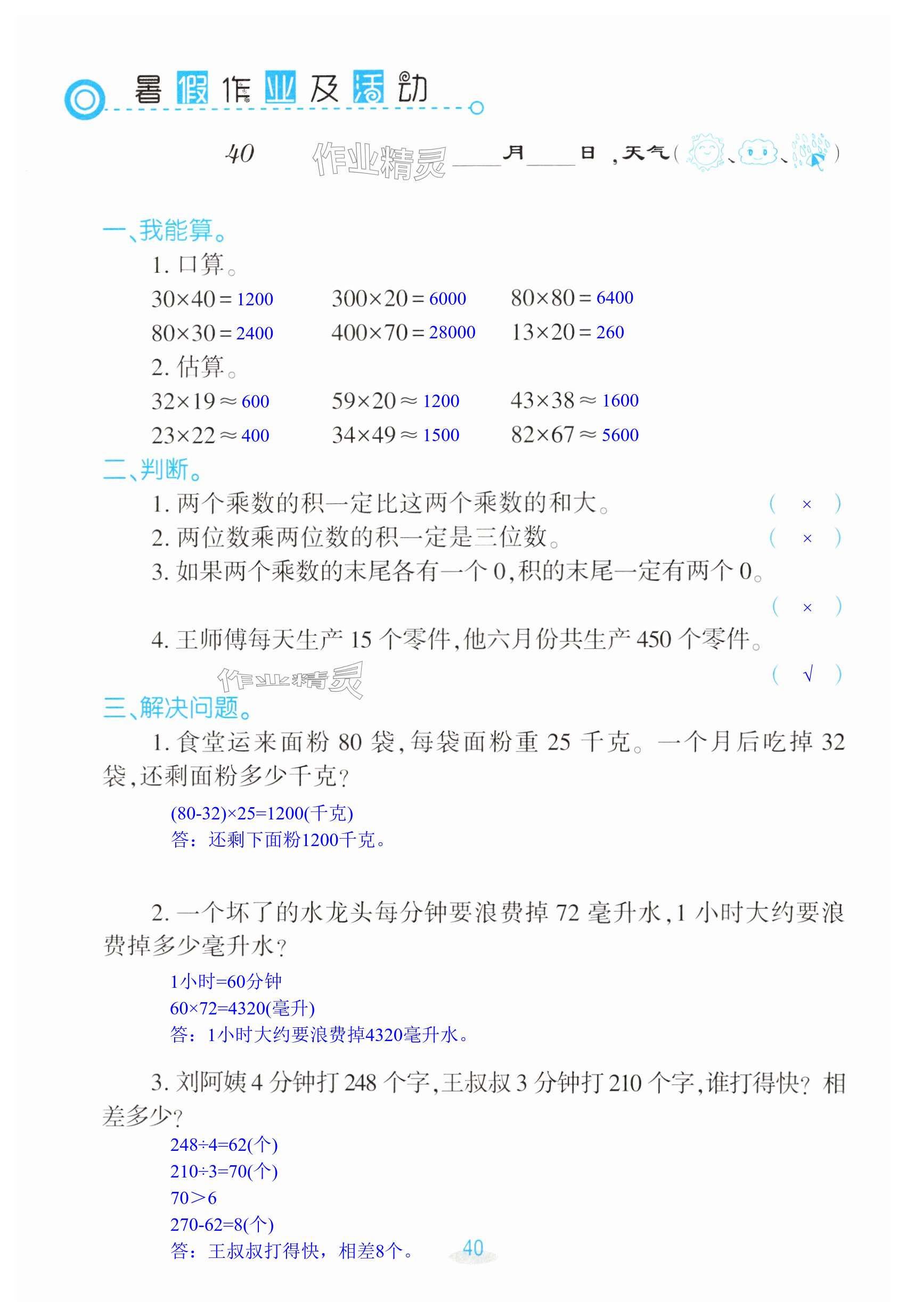 注:目前有些书本章节名称可能整理的还不是很完善,但都是按照顺序排列的,请同学们按照顺序仔细查找。练习册 2024年暑假作业及活动新疆文化出版社三年级数学 答案主要是用来给同学们做完题方便对答案用的,请勿直接抄袭。