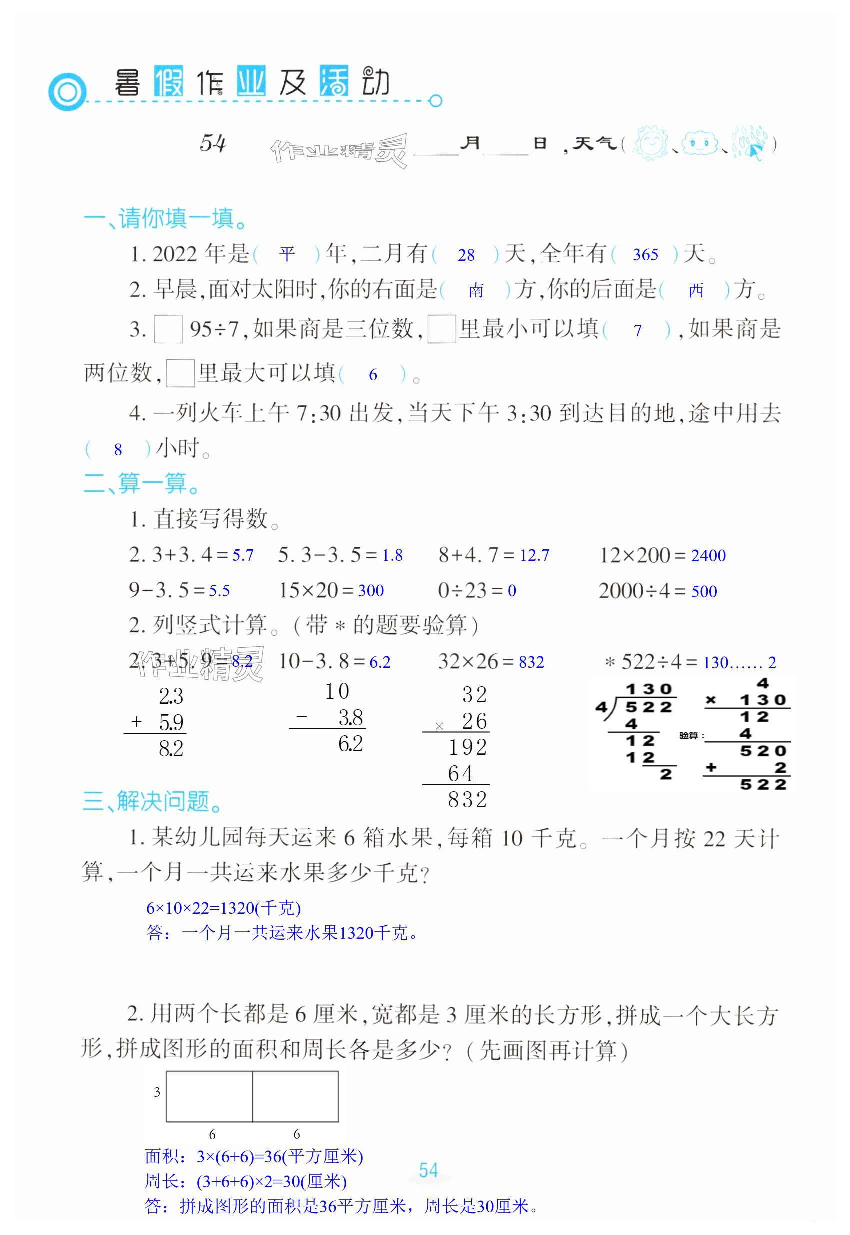 2024年暑假作业及活动新疆文化出版社三年级数学
