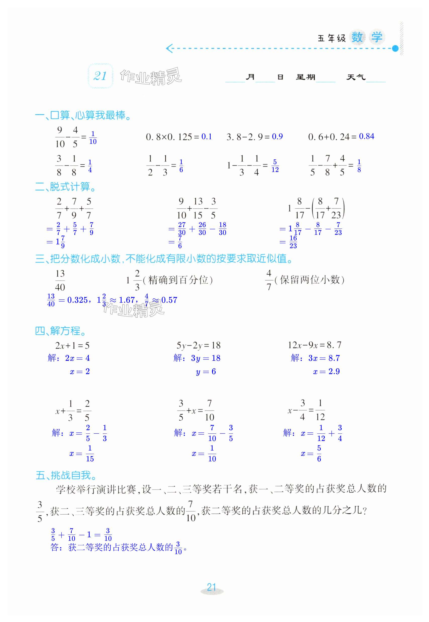 注:目前有些书本章节名称可能整理的还不是很完善,但都是按照顺序排列的,请同学们按照顺序仔细查找。练习册 2024年暑假作业及活动新疆文化出版社五年级数学人教版 答案主要是用来给同学们做完题方便对答案用的,请勿直接抄袭。