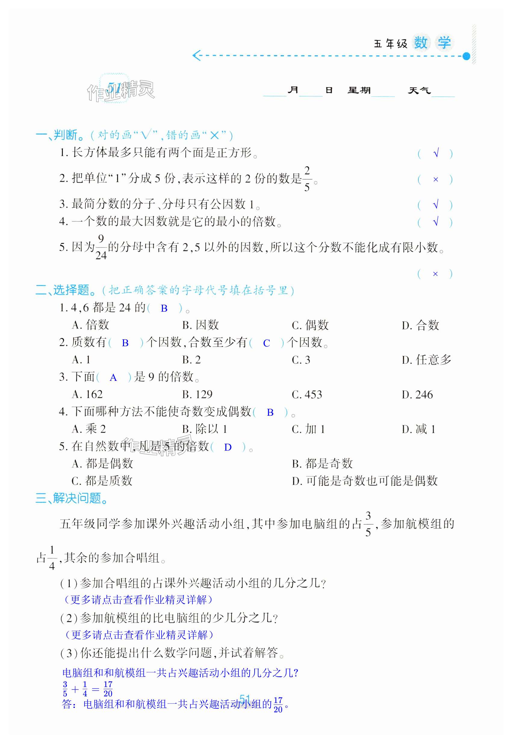 注:目前有些书本章节名称可能整理的还不是很完善,但都是按照顺序排列的,请同学们按照顺序仔细查找。练习册 2024年暑假作业及活动新疆文化出版社五年级数学人教版 答案主要是用来给同学们做完题方便对答案用的,请勿直接抄袭。