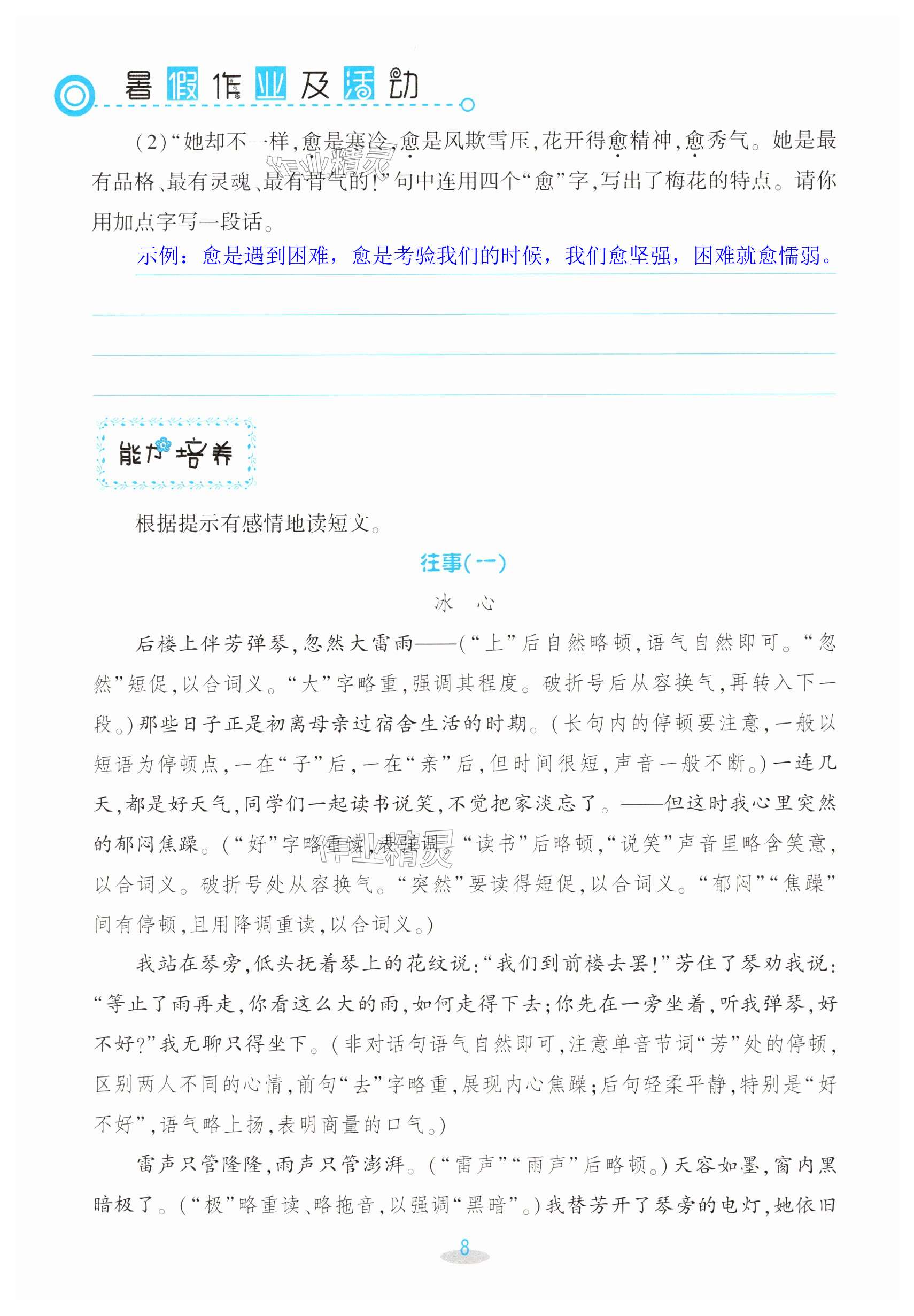 注:目前有些书本章节名称可能整理的还不是很完善,但都是按照顺序排列的,请同学们按照顺序仔细查找。练习册 2024年暑假作业及活动新疆文化出版社五年级语文 答案主要是用来给同学们做完题方便对答案用的,请勿直接抄袭。